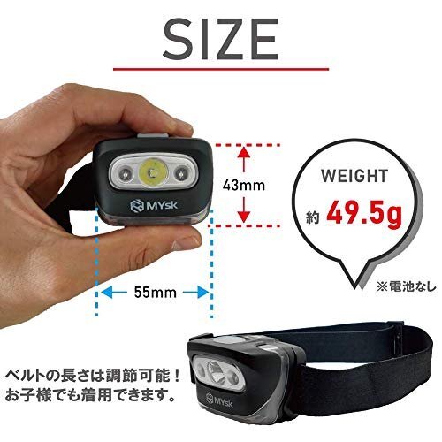 ブランド:MYsk(ミスク)カラー:ブラックサイズ:フリーサイズ明るさ(約):5ルーメン(ExLow)・100ルーメン(Mid)・200ルーメン(High)