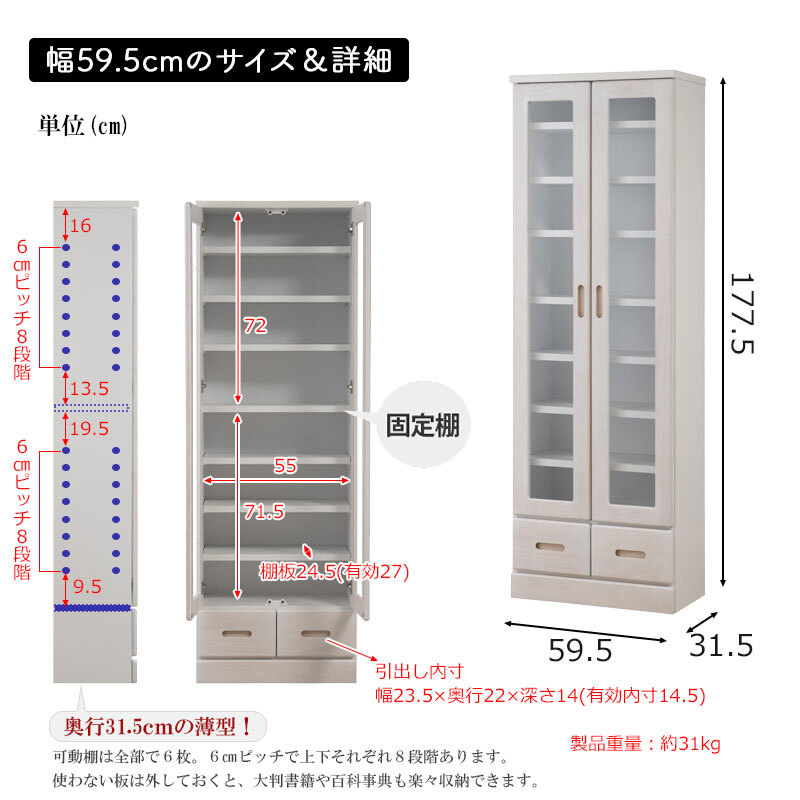 ■商品サイズ/本体:(約)幅59.5×奥行31.5×高さ177.5cm