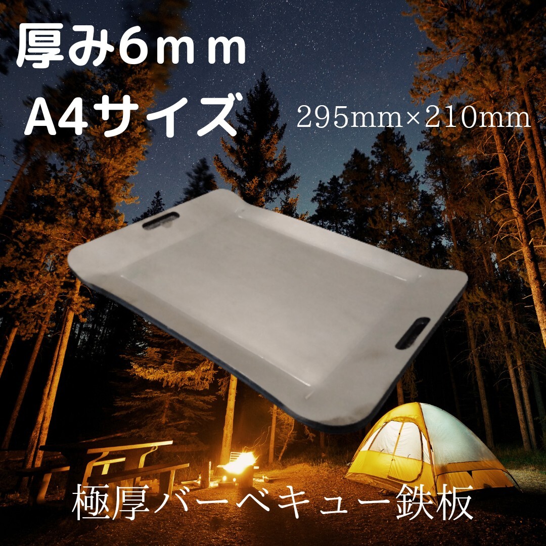 6mm極厚 A4サイズ BBQ鉄板!!295mm×210mm焼き面215mm×160mmソロキャンプ、2~3人