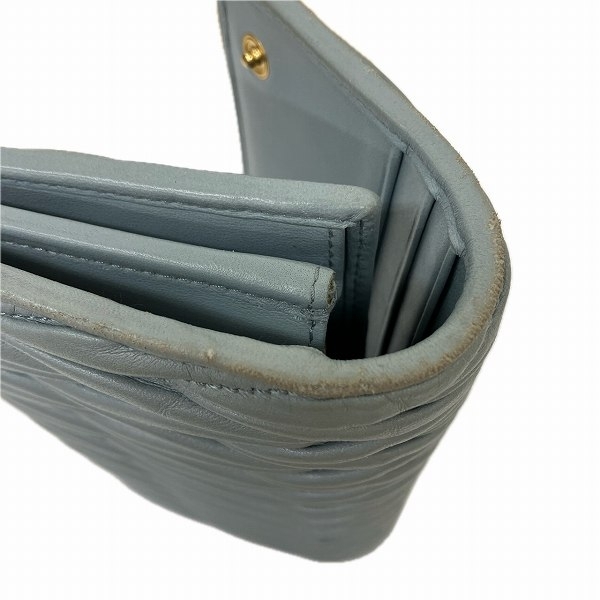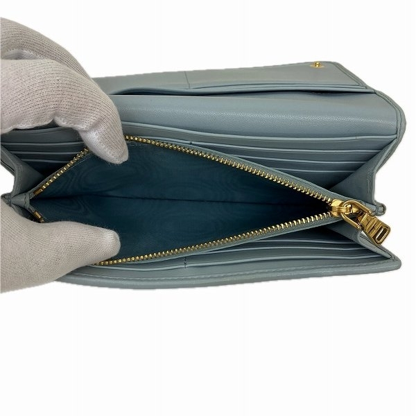 | 【ブランド】ミュウミュウ 【ライン】マテラッセ 【型番】5MH109 【カラー】ウォーターブルー 【素材】ラムスキン 【仕様】お札入れ×2、小銭入れ×1 カード入れ×16、ポケット×2 【サイズ】H約10cm×W約19.5cm×D約3cm 【付属品】箱 【ランク】B (使用感あり) 【状態】 外側の状態:擦れ、角擦れ、中程度有り 汚れ、使用感、小程度有り 内側の状態:汚れ、使用感、小程度有り 金具の状態:汚れ、傷、使用感、極小程度有り 小銭入れの中の状態:汚れ、極小程度有り 付属品の状態:汚れ、極小程度有り | |