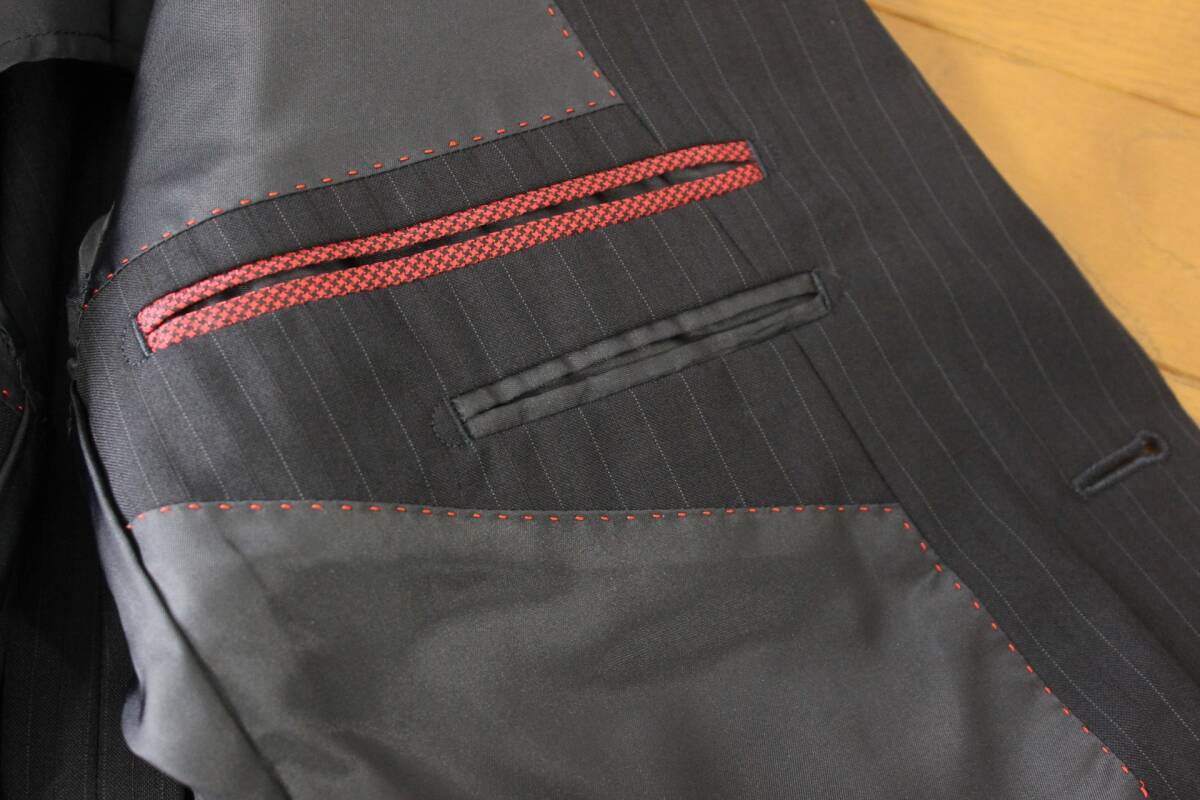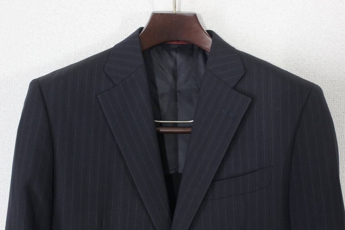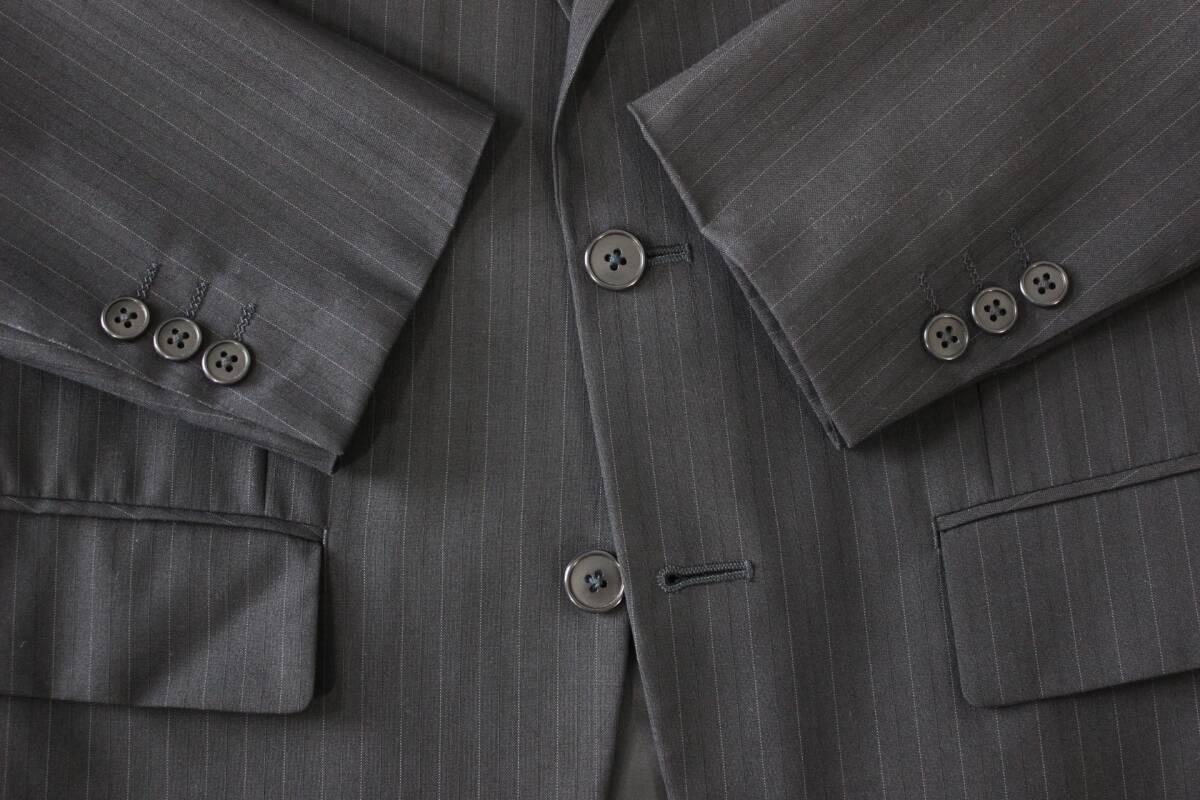 ジャケットは,2ボタン1掛け・背抜き仕立て・センターベント・D管留め・袖額縁仕立て
