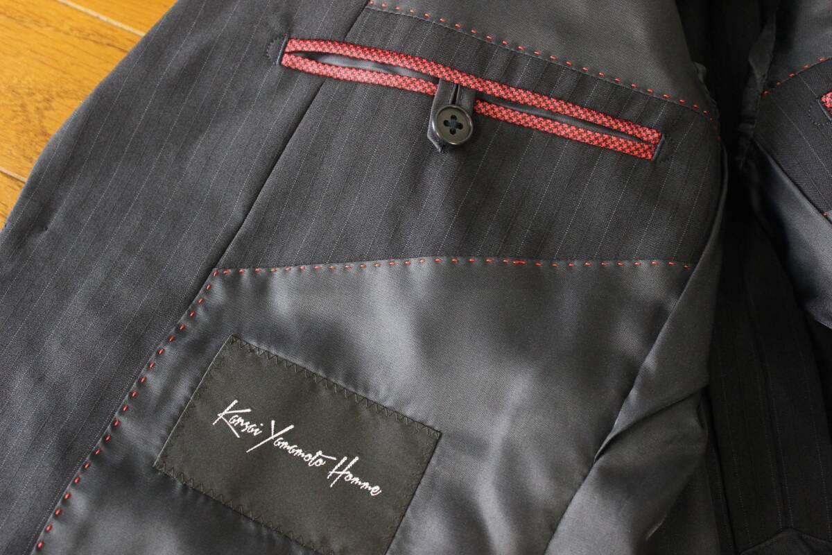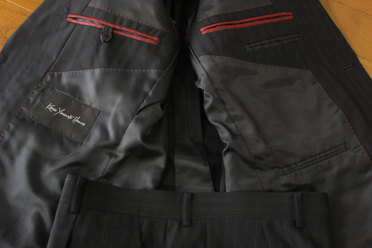 08【美品】カンサイヤマモト オム スーツ A3 メンズ S ブラック 黒 フォーマル 面接 ビジネス tqe KANSAI YAMAMOTO HOMME 春夏秋 ★美品★
