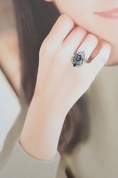 コメント檜佐賢治の、ブルーサファイアと2粒のトリートブルーダイヤモンドのコントラストから気品を感じるリングです。ダイヤモンドの眩い輝きがお手元に華やかさを演出してくれます。