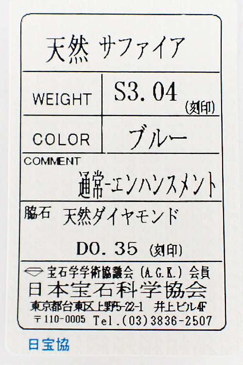 特記事項アームに肉眼で目立たない程度のロー目があります。サファイア台座側面に、肉眼では目立たない程度の小傷があります。
