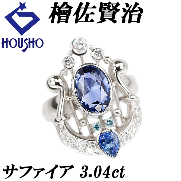 檜佐賢治 ブルーサファイア リング ダイヤモンド Pt900 KENJI HISA 作家 デザイナー 送料無料 中古 宝正 901521