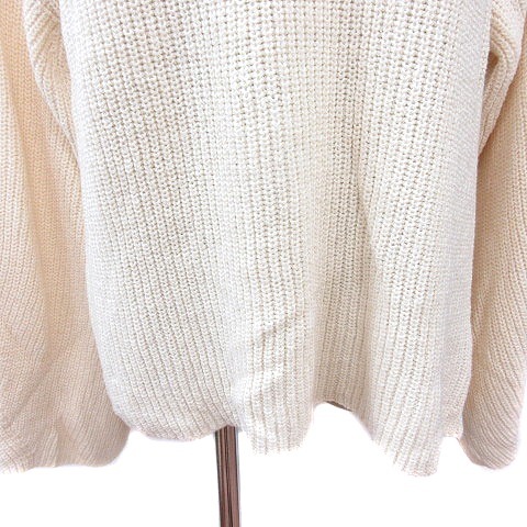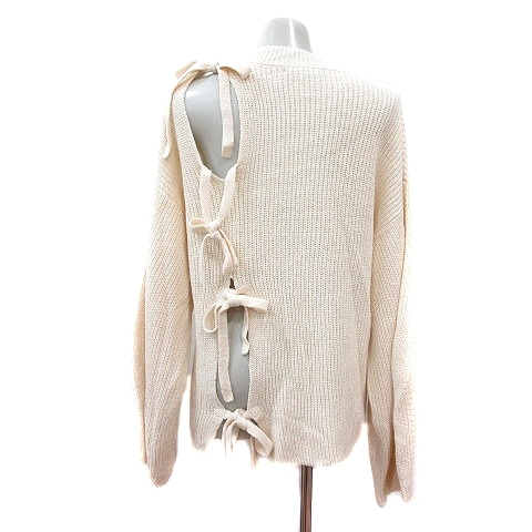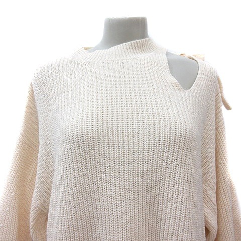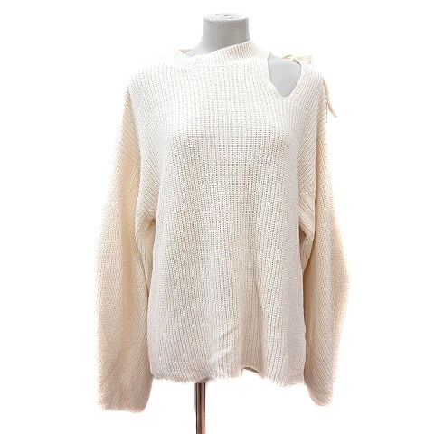 エモダ EMODA ニット セーター ハイネック 長袖 オープンショルダー リボン F 白 アイボリー /MN レディース