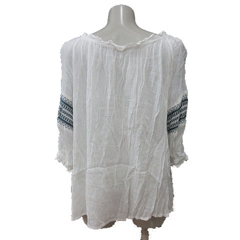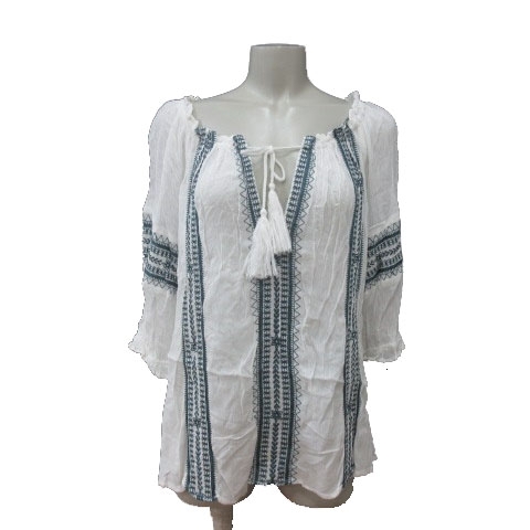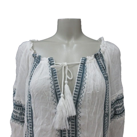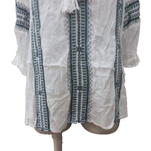 マウジー MOUSSY ブラウス 刺繍 フリル 五分袖 F 白 ホワイト 緑 グリーン /MS レディース