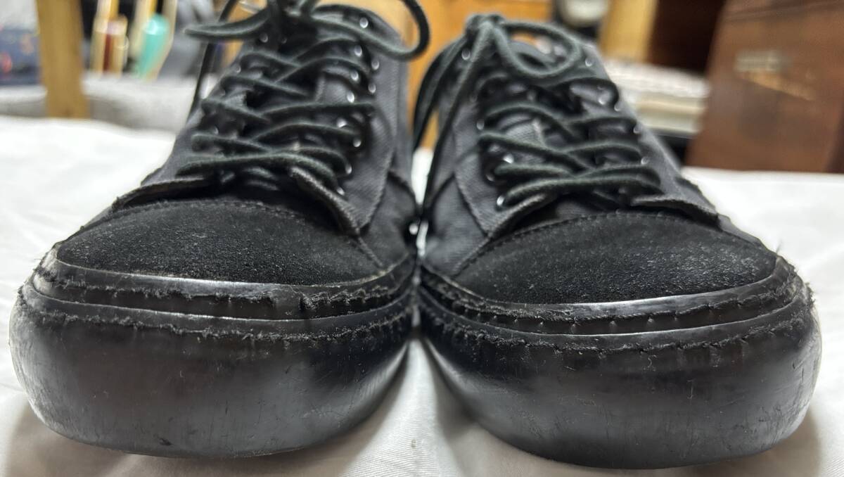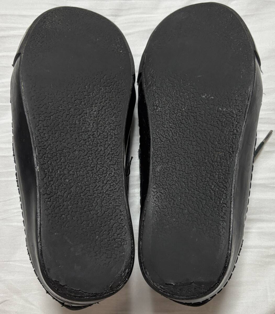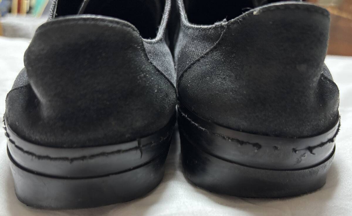 糸のほつれ、ソールの減り多い。かかとはがれやすくなってます