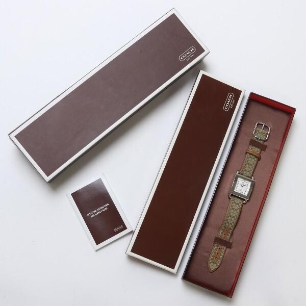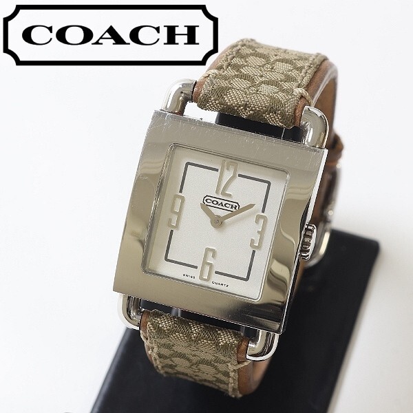 【FA413】◆COACH コーチ 0221 クォーツ スクエア シグネチャーベルト レディース 腕時計 | |