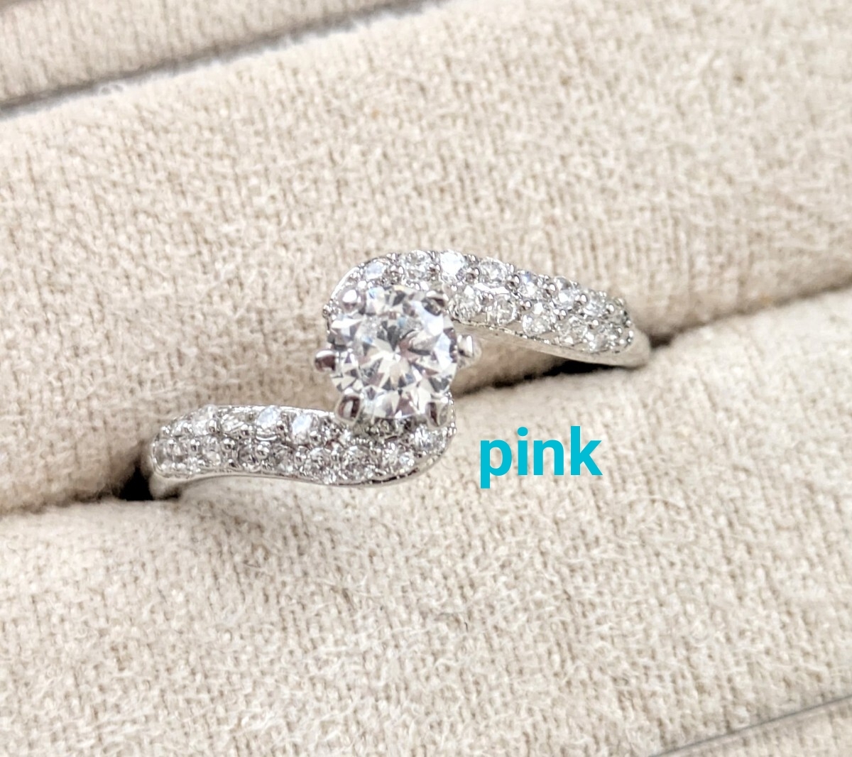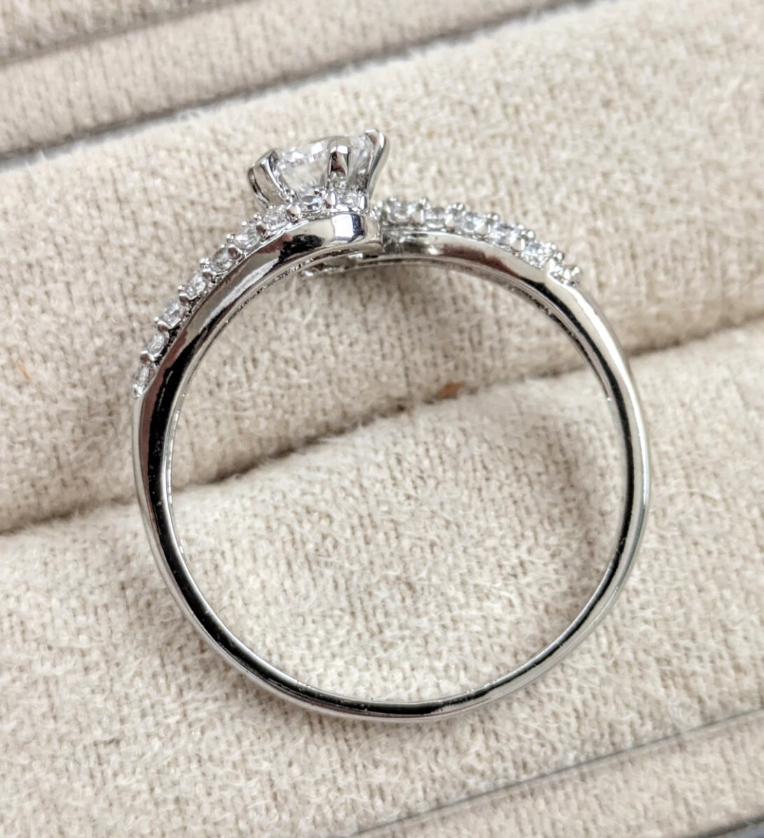 華やかな輝きを放つ、ラウンドカットの人工ダイアモンドを散りばめたリングです。シンプルながら存在感のあるお品です。重ね付けにもおすすめです。