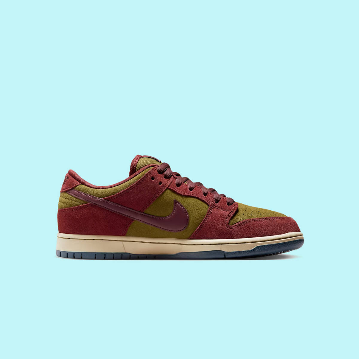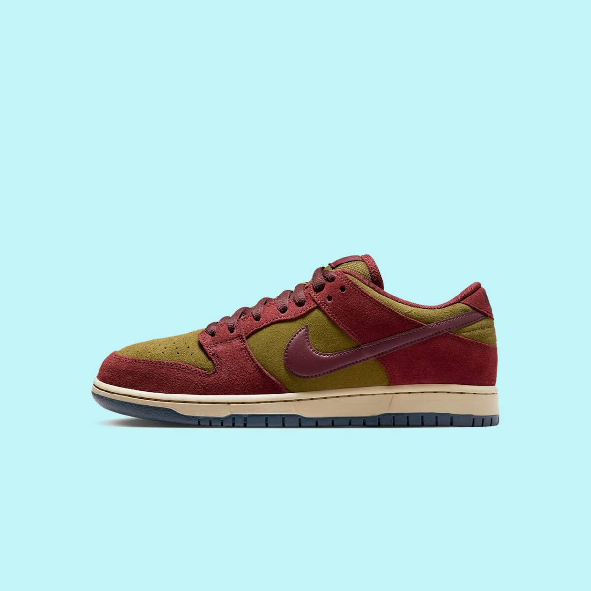 秋に向けてぴったりのカラーで走り出そう。ダンク LOWがダークチームレッドとオリーブフラックの素朴なスエードをまとって登場。パラシュートベージュのサイドウォールとアーモリーネイビーのアウトソールを組み合わせたムーディーなスタイルが、季節の変わり目によく馴染む。スケートボードのアイコンと称されるだけあって、期待を裏切らない一足だ。パッド入りの履き口、軽量フォームクッショニング、ヒールのAir Zoomユニットが優れた反発力と履き心地をもたらし、あらゆるシーンで活躍する。