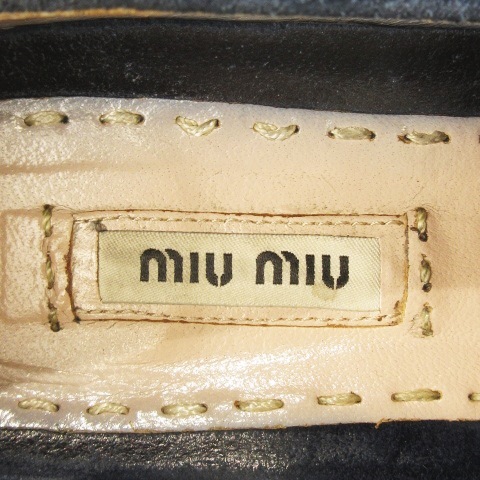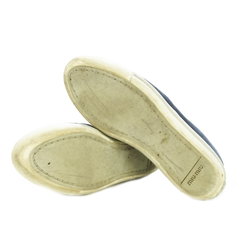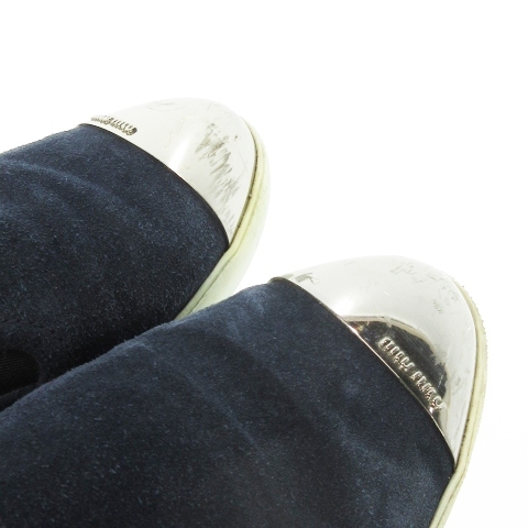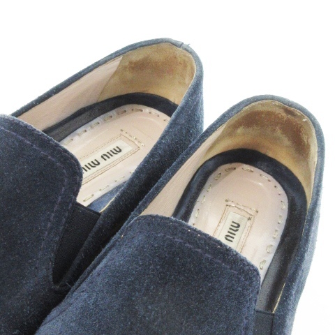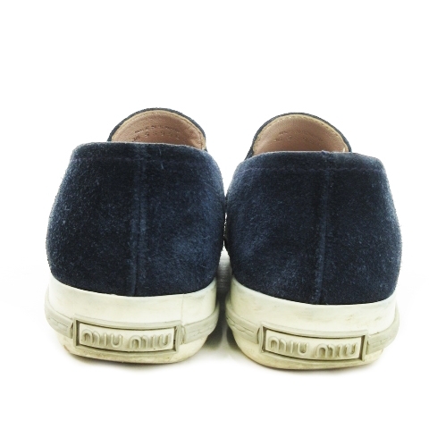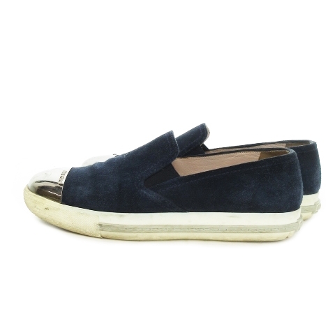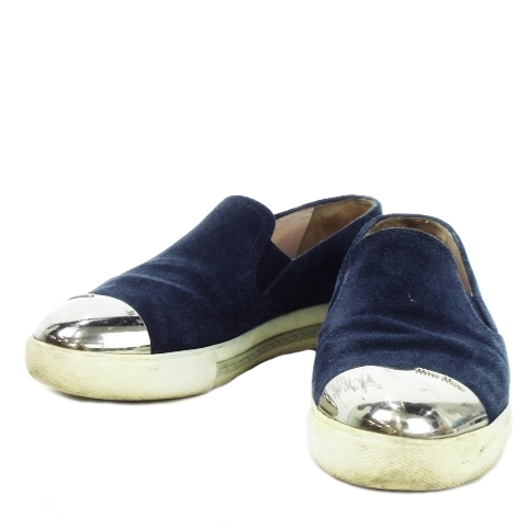 ミュウミュウ miumiu スリッポン シューズ スニーカー メタルトゥ スエード 本革 ロゴ 36 23cm 紺 ネイビー 5S9536