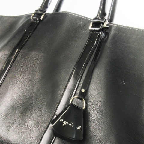 アニエスベー ボヤージュ Agnes b. VOYAGE トートバッグ レザー 革 エナメル ロゴチャーム 黒 ブラック /CK13 ■GY11 レディース