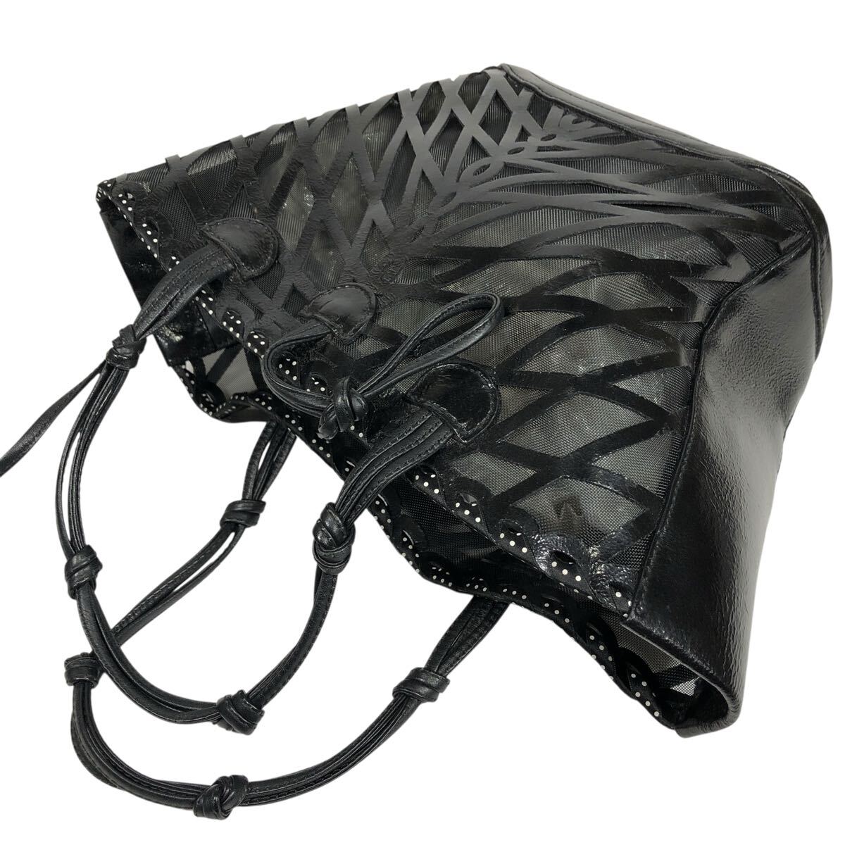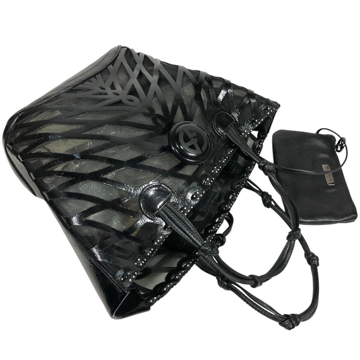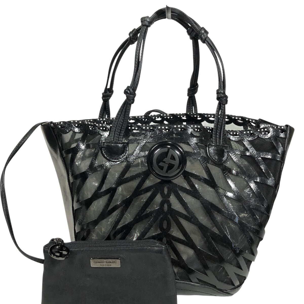 【ジョルジオアルマーニ】本物 GIORGIO ARMANI ハンドバッグ ロゴモチーフ ポーチ付き ミニトートバッグ メッシュ×レザー レディース 伊製