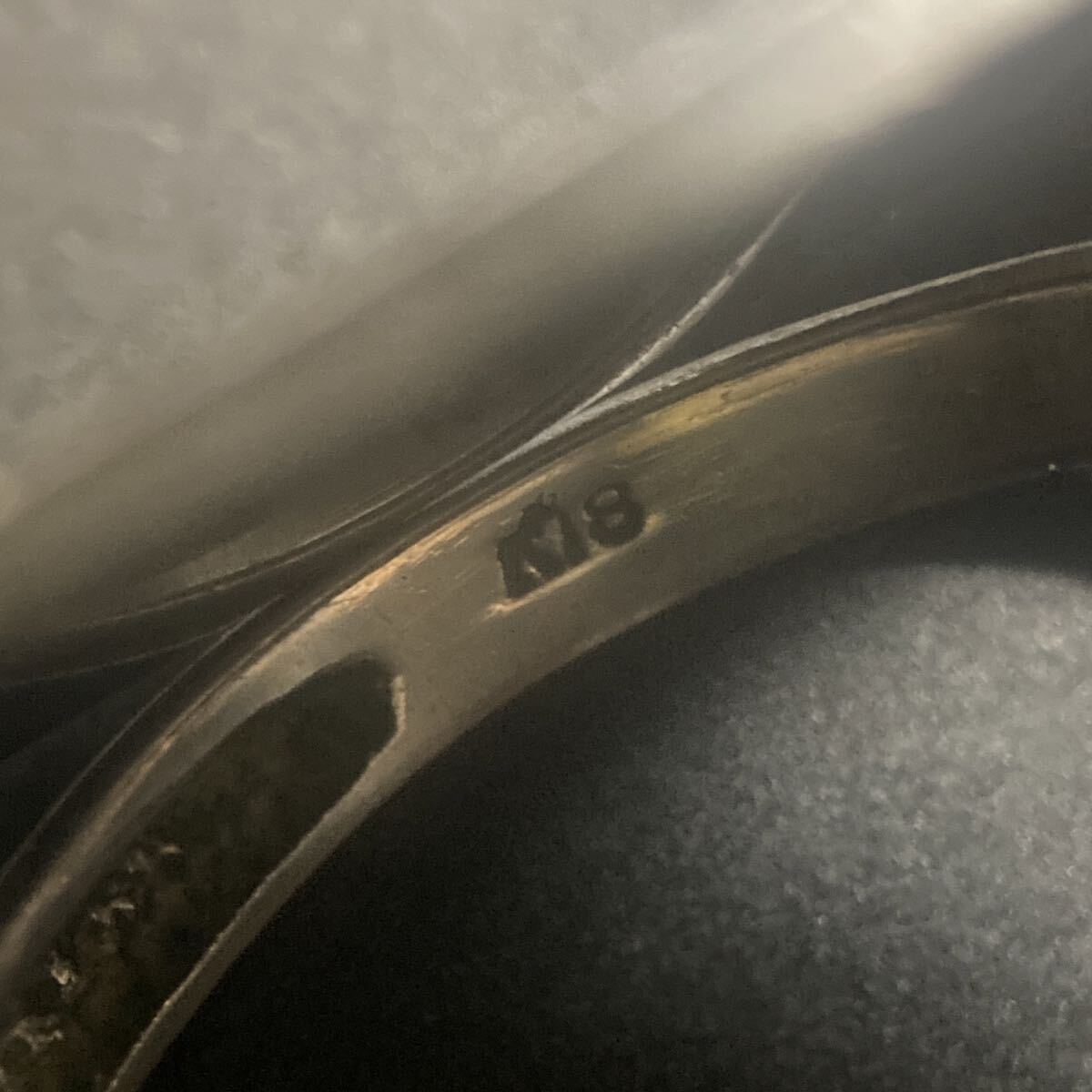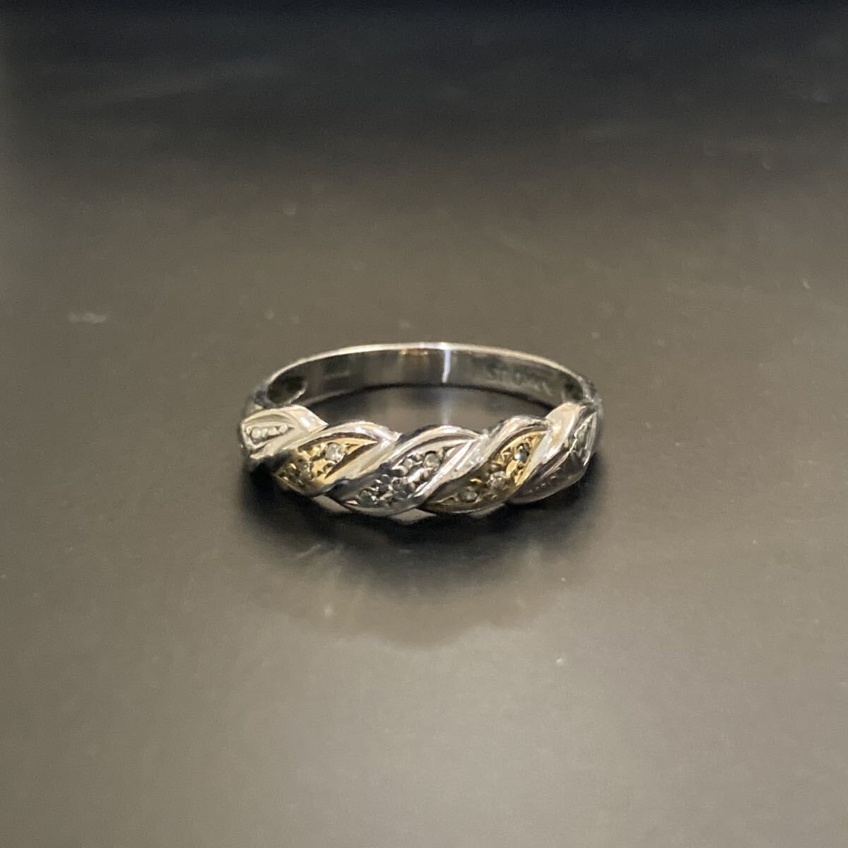 シンプルながらもプラチナをベースに18金をあしらい、ダイヤ9石を使った高級感と存在感のあるリングです。