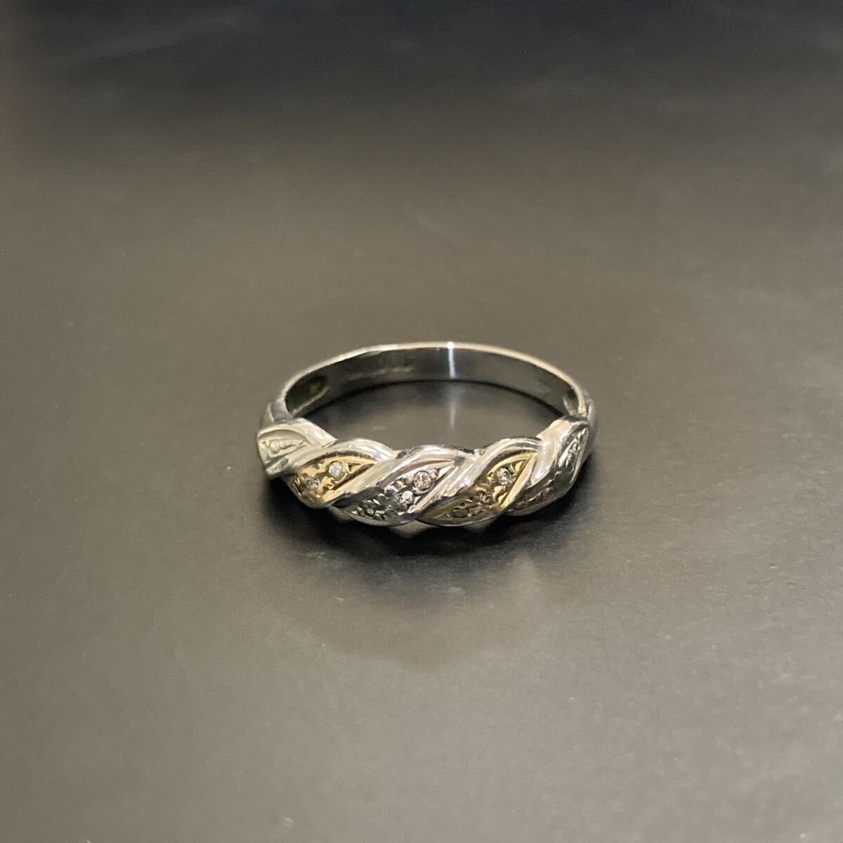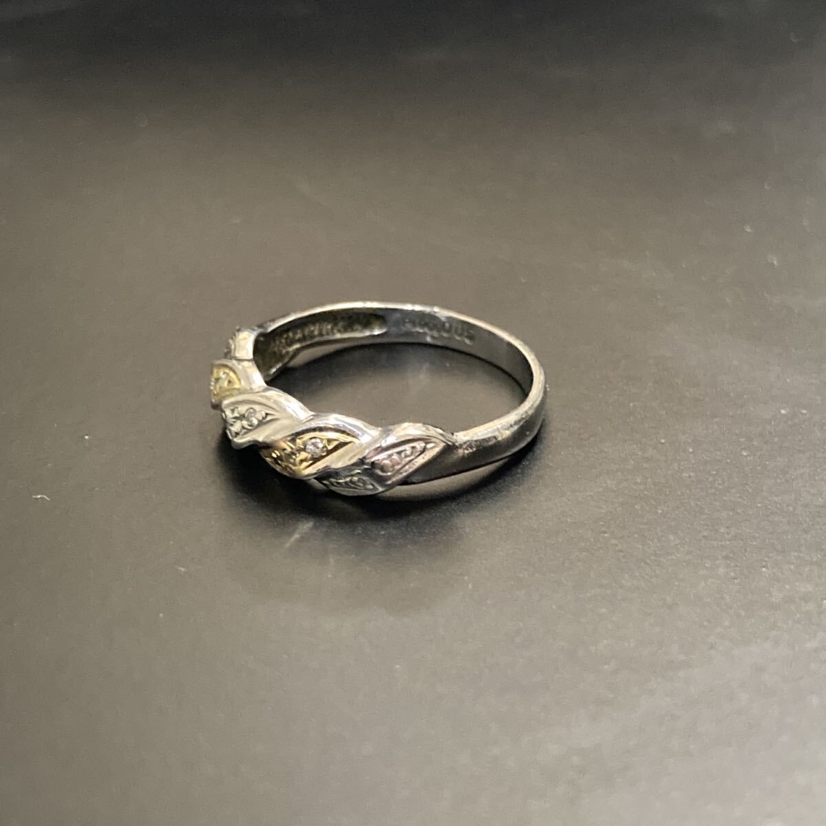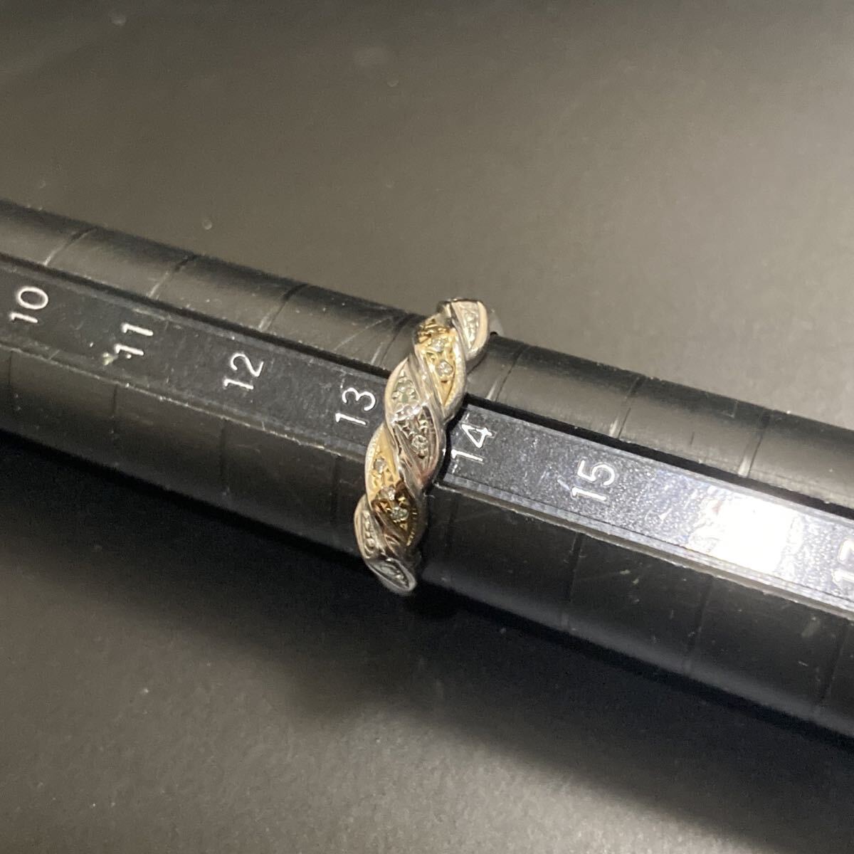 プラチナ  ゴールド コンビ デザイン リング ダイアモンド 9石  pt900 18k 18金 #13.5 0.05ct ヴィンテージ