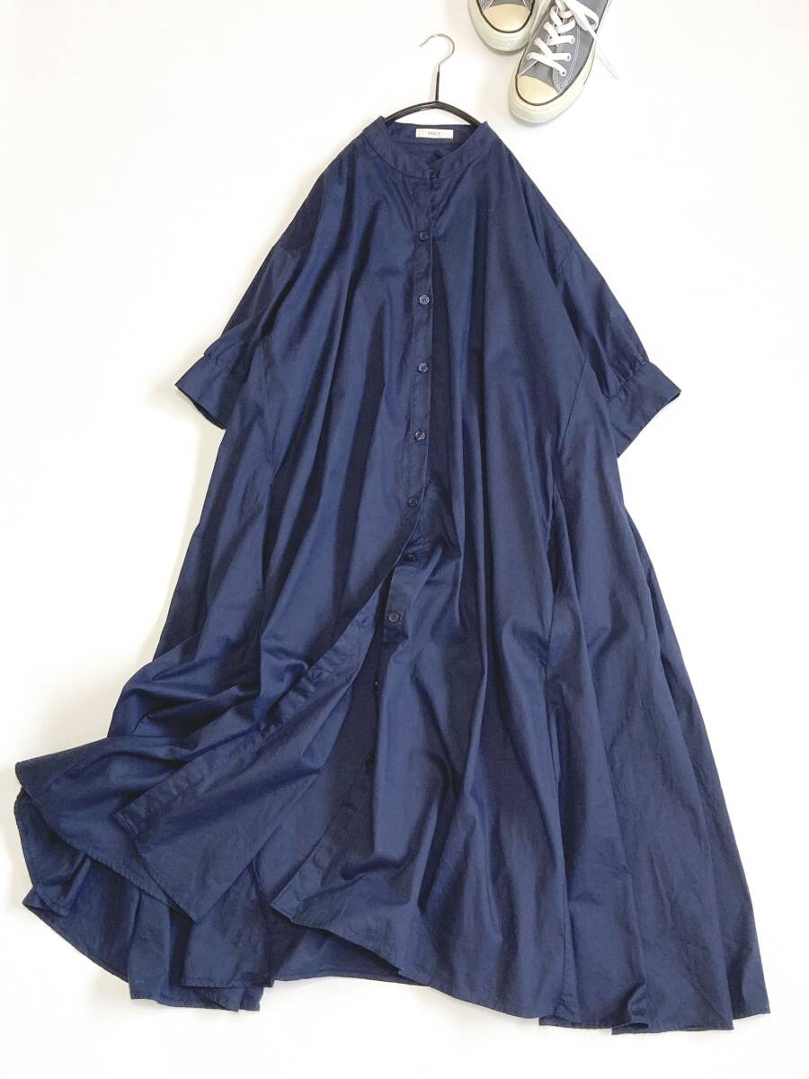 DAIS-Y  デイジー  ネイビー  ゆったり  コットンAラインフレアロングシャツワンピース