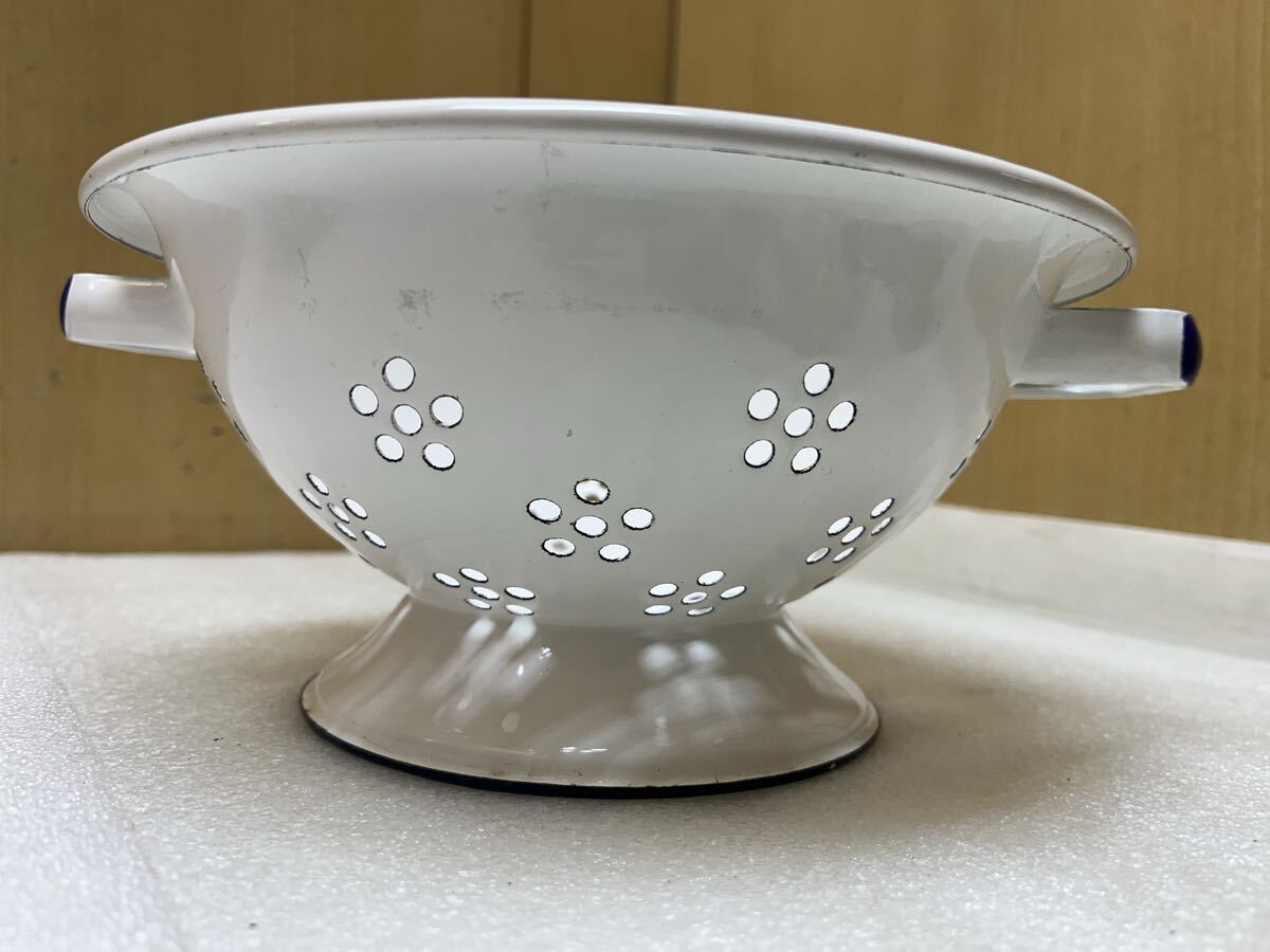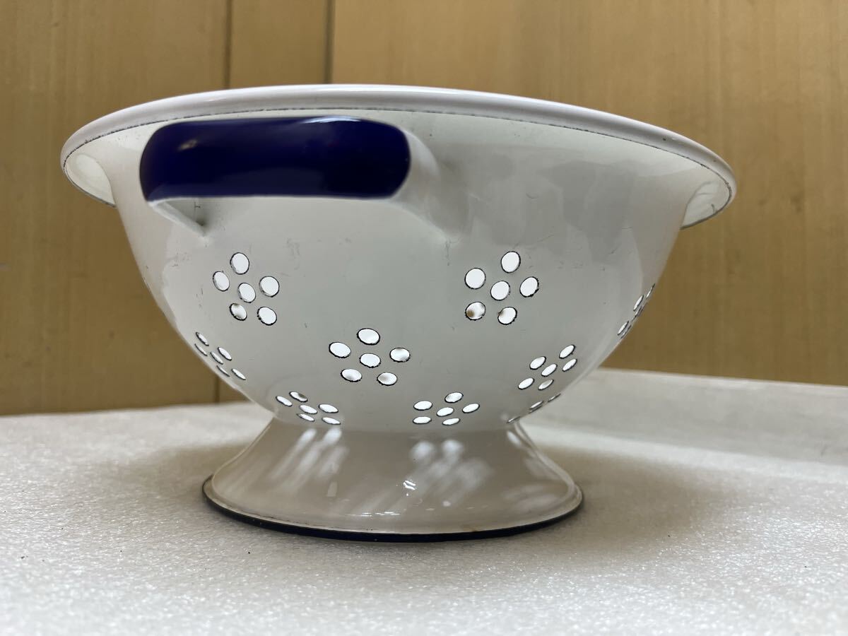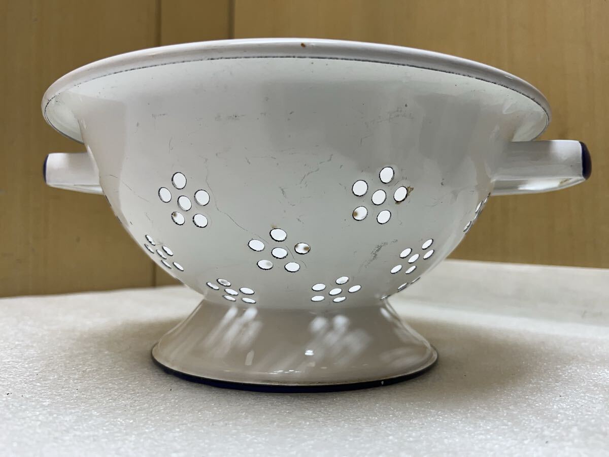 RE6529 琺瑯 直径約22.7cm 高さ約10.5cm ホーロー 水切り ざる 現状品 0728