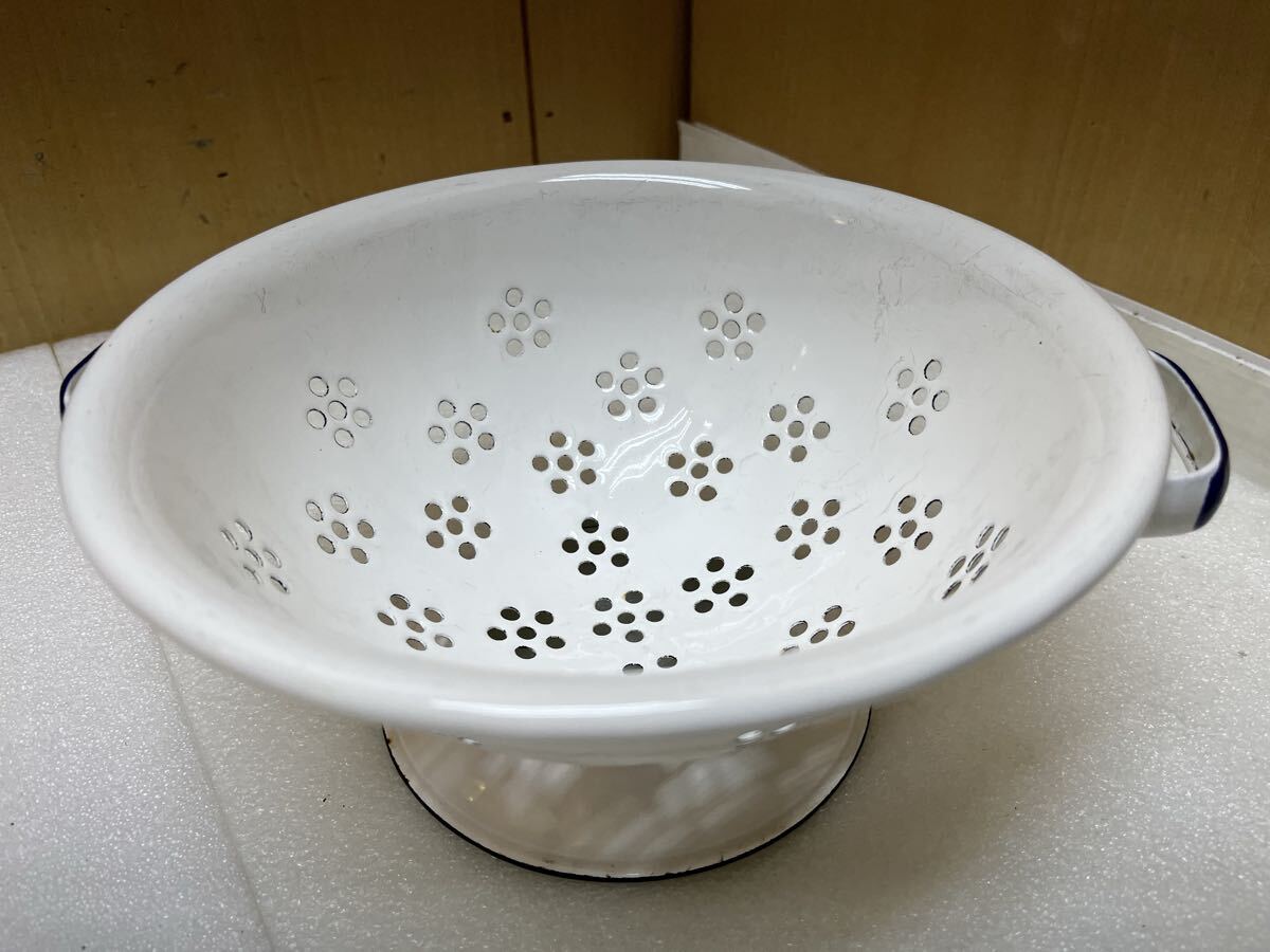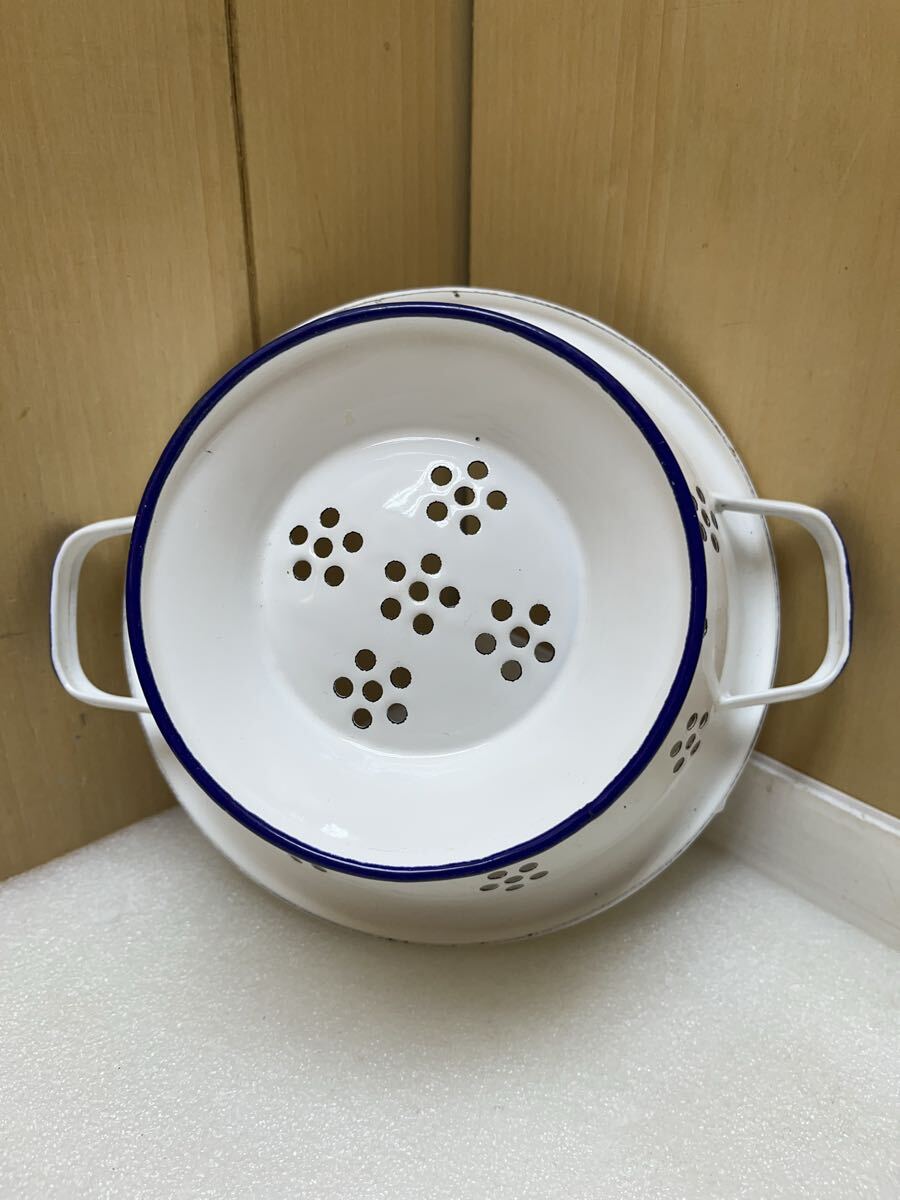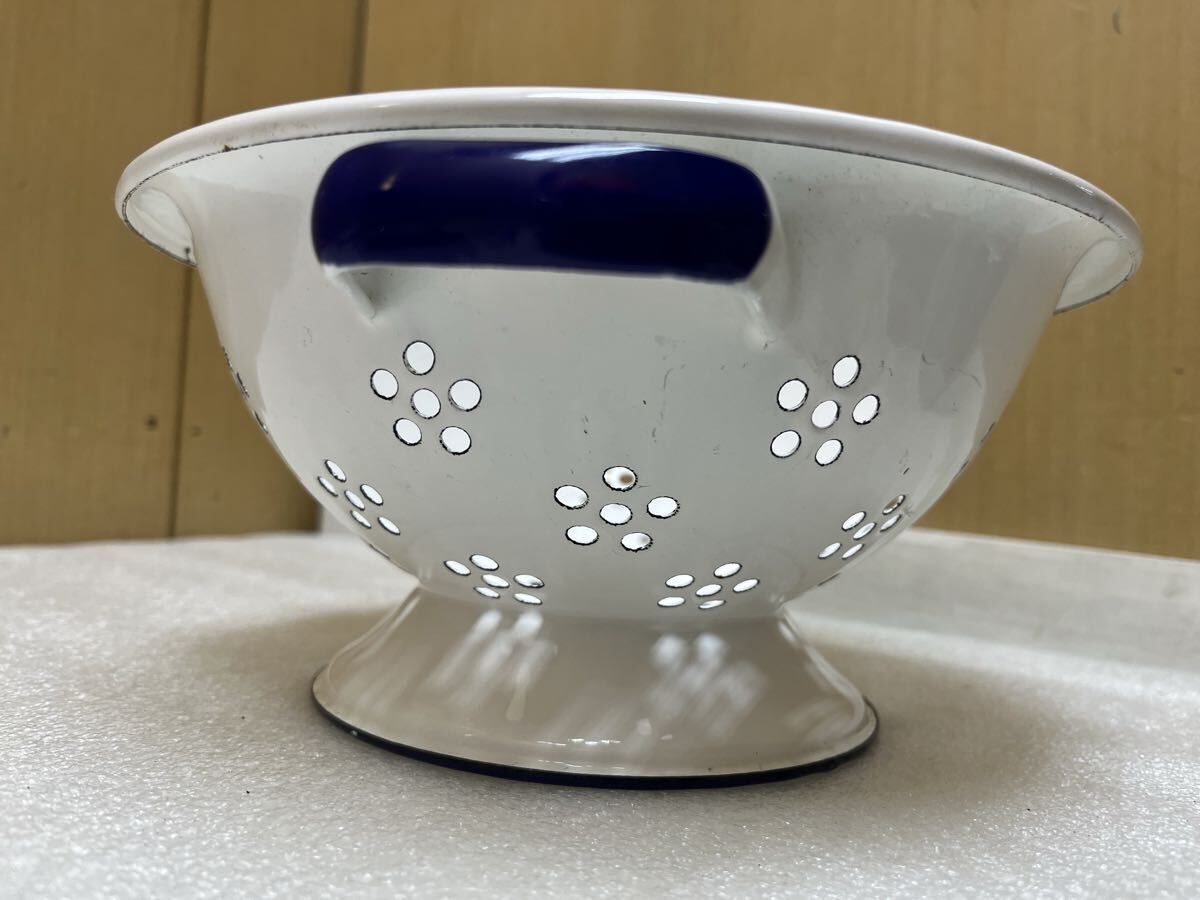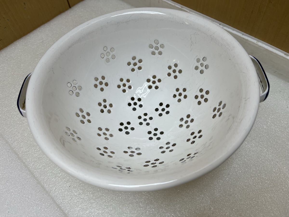 RE6529 琺瑯 直径約22.7cm 高さ約10.5cm ホーロー 水切り ざる 現状品 0728