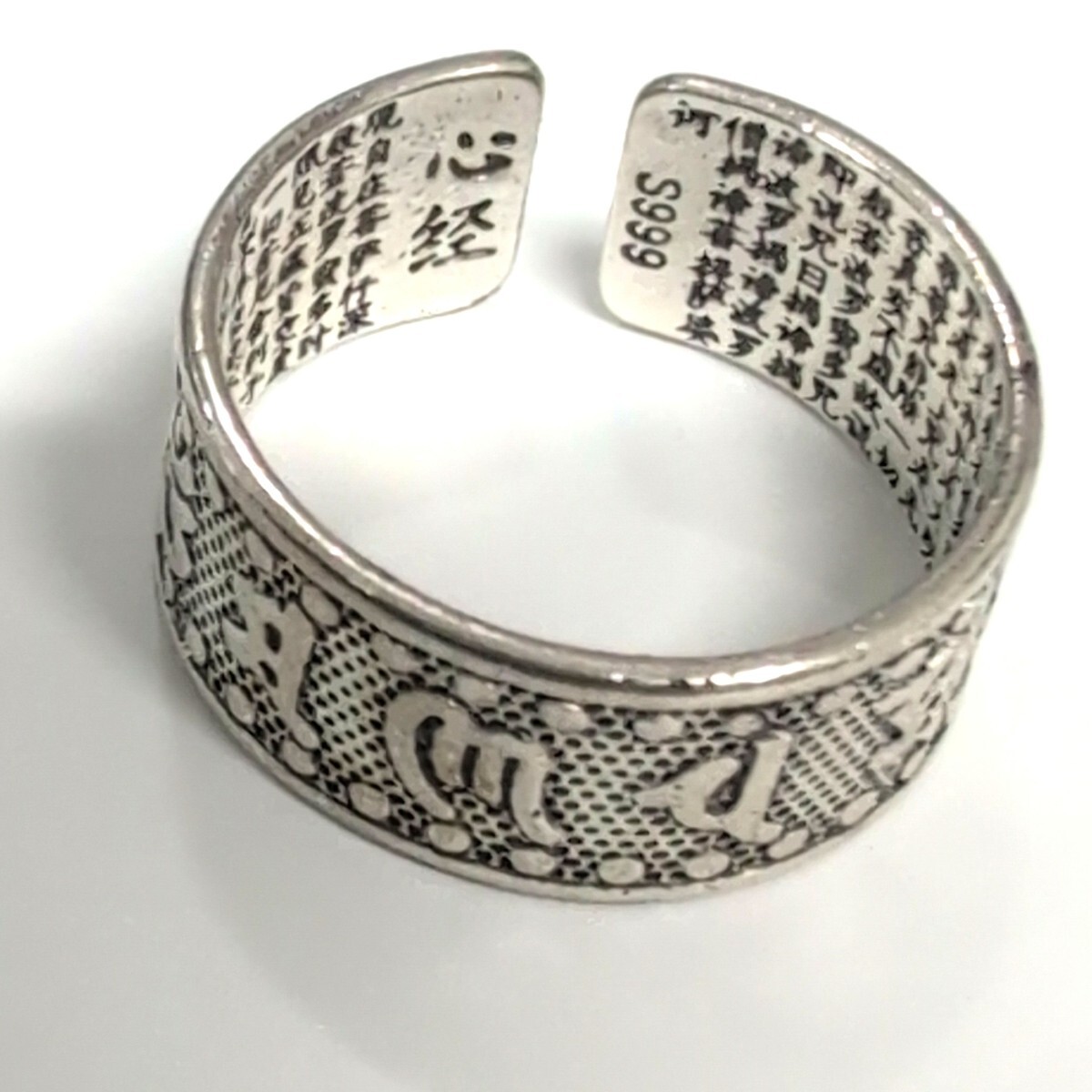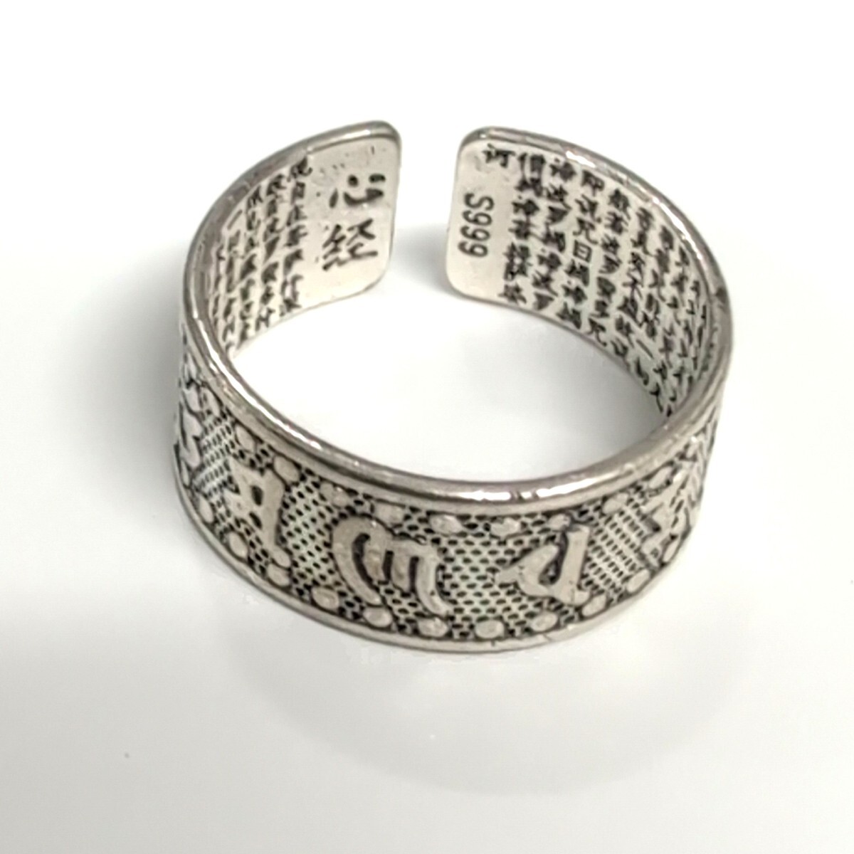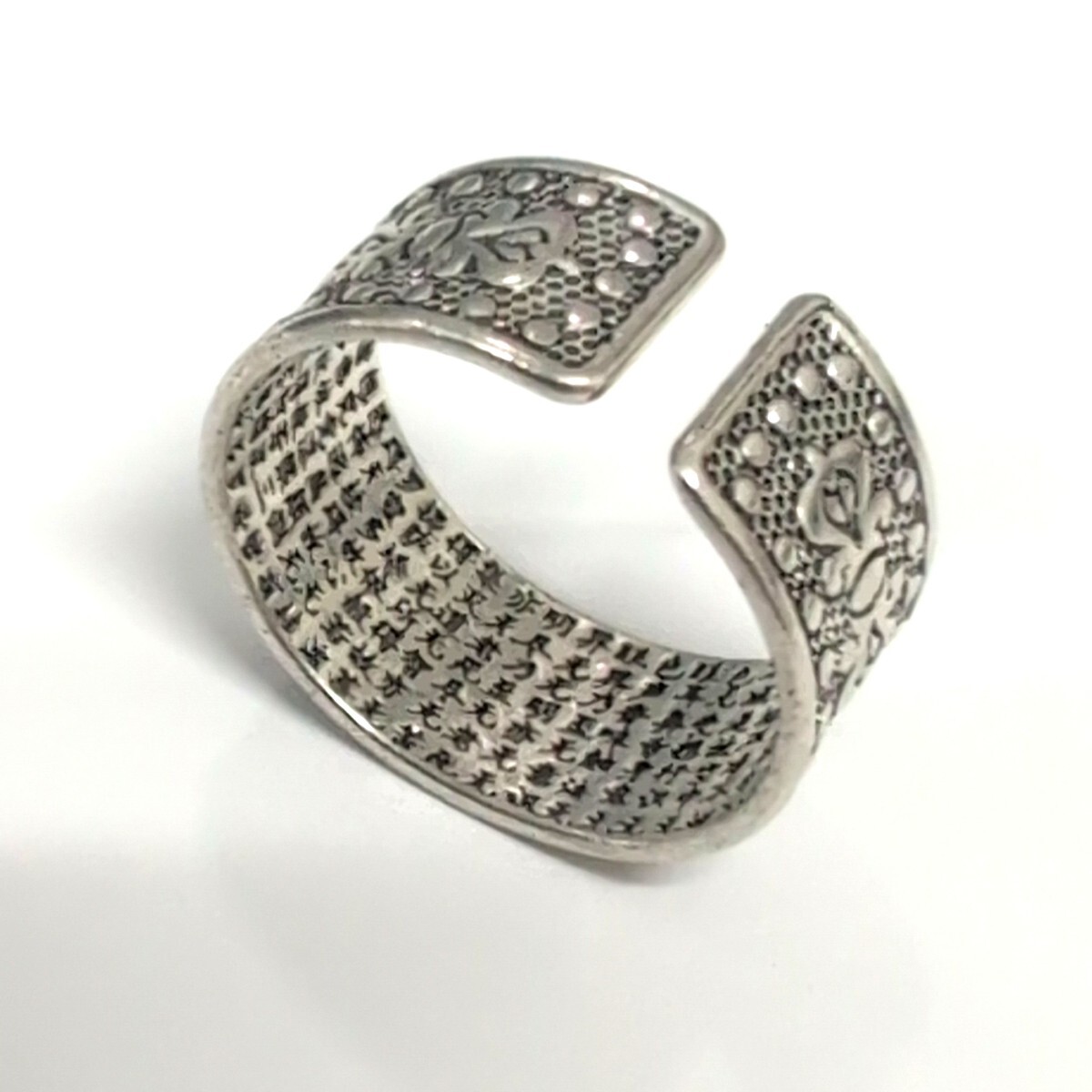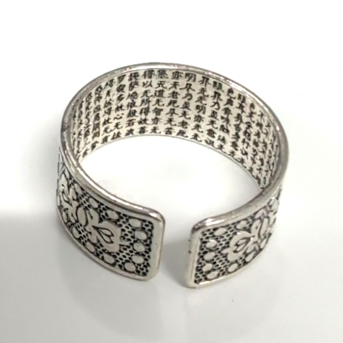 般若心経 シルバー999 花柄オープンリング