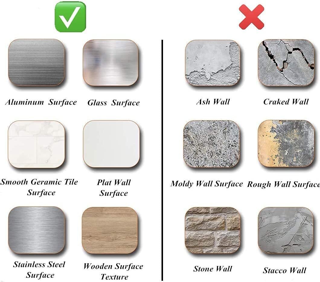使用面の要求:タイルシールを貼る前に、必ず貼る対象物の埃や汚れを取り除き、表面が滑らかで平らな状態を保証してください。例えば、セラミック表面、ガラス表面、平らなソリッドウッドの板表面などです。粗くて凹凸のある表面に貼り付けるのに適用していません。例えば、レンガの壁、石垣、石膏の壁、がれやすい壁紙、灰の壁などです。(関連する壁体表面の製品写真がありますので、ご参照ください。)