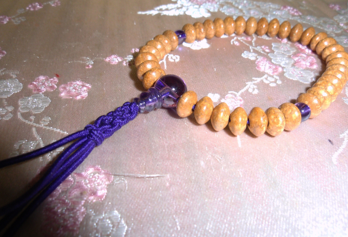 天竺菩提樹 天然アメジスト仕立 平玉 腕輪念珠