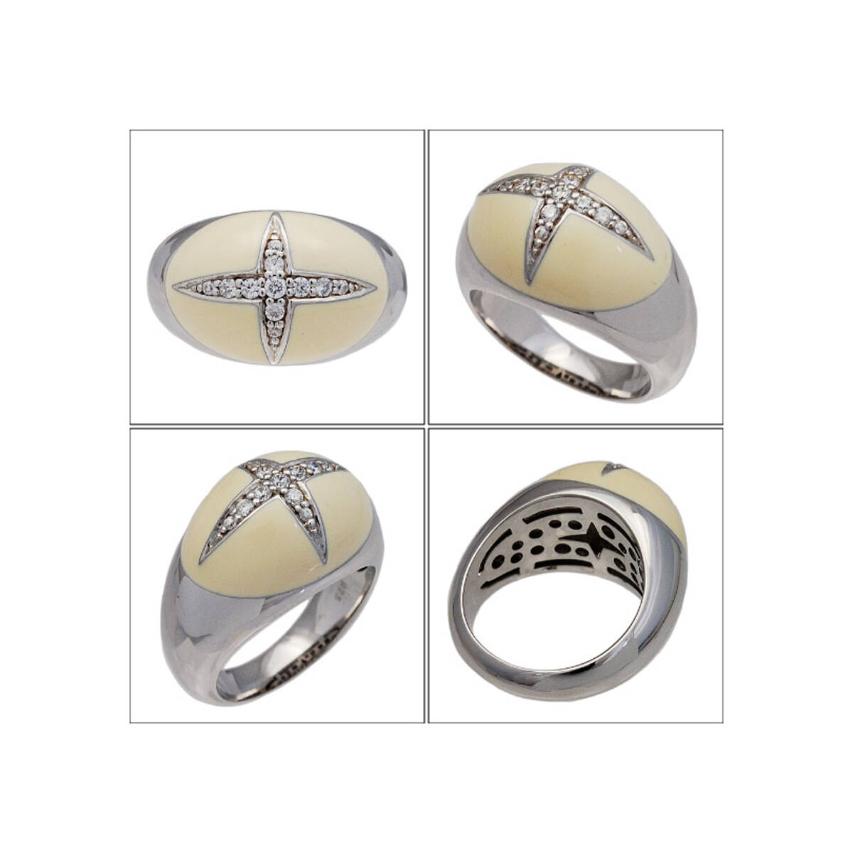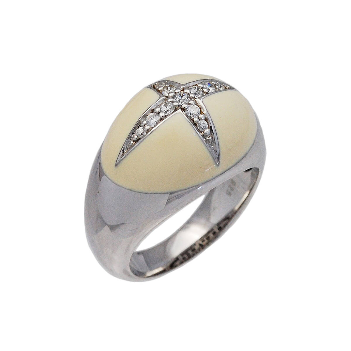 15号 ベージュエナメルジルコニア925シルバーロジウムメッキリング925刻印あり GF-18824W