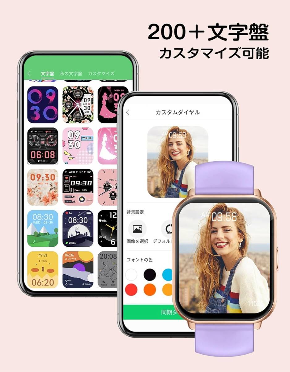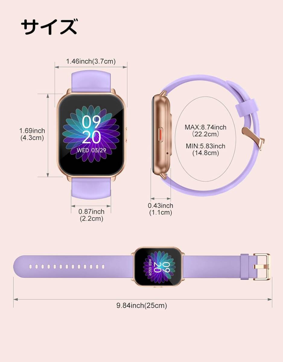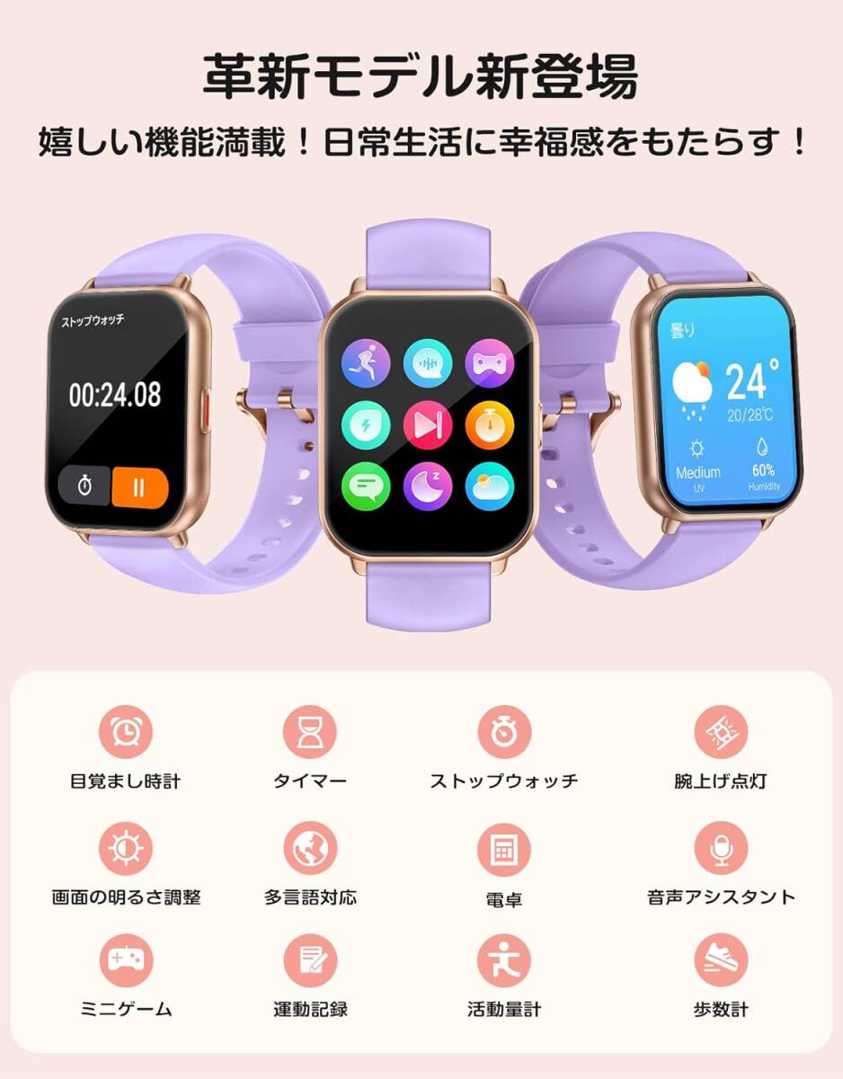ライトパープルゴールド色 洗練された美しさ×未来テクノロジー 大人のスマートウォッチ RUIMEN スマートウォッチ iPhone