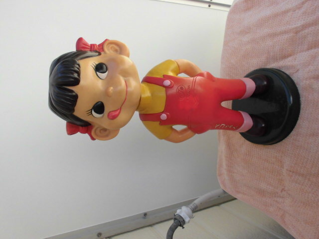 美品・希少品・不二家ペコちゃん人形・ジャンボ カウンター45センチブリキ台・袴ハカマ