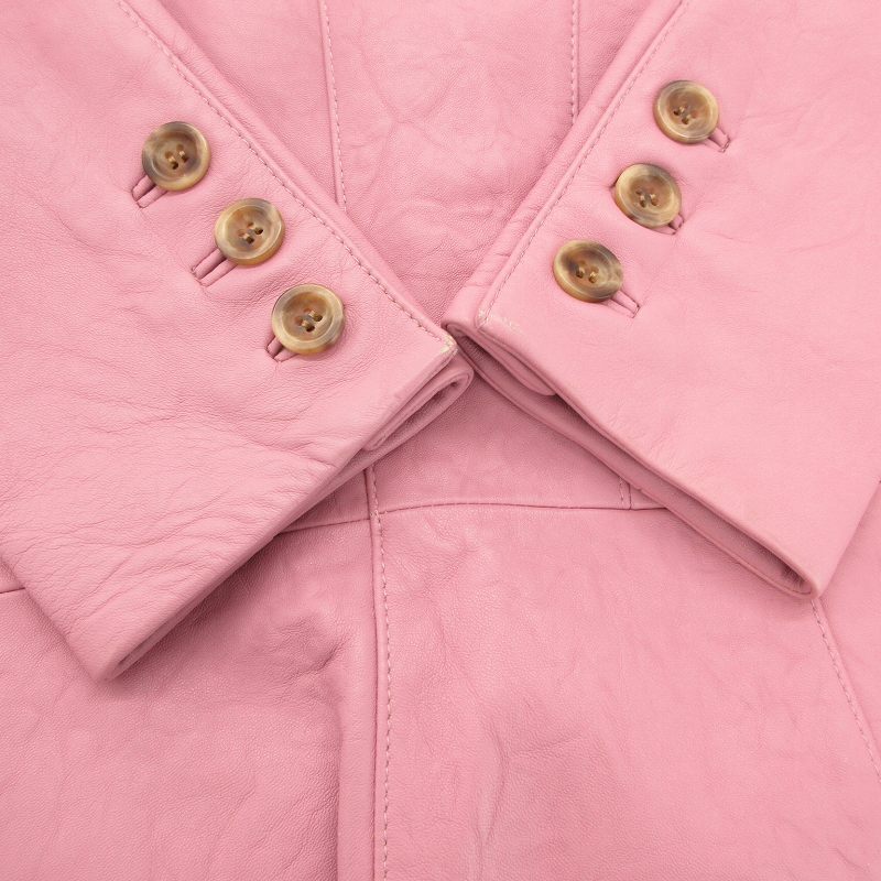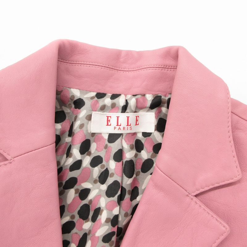 エル ELLE レザージャケット シープスキン ノッチドラペル 38 ピンク /JS ■FF レディース