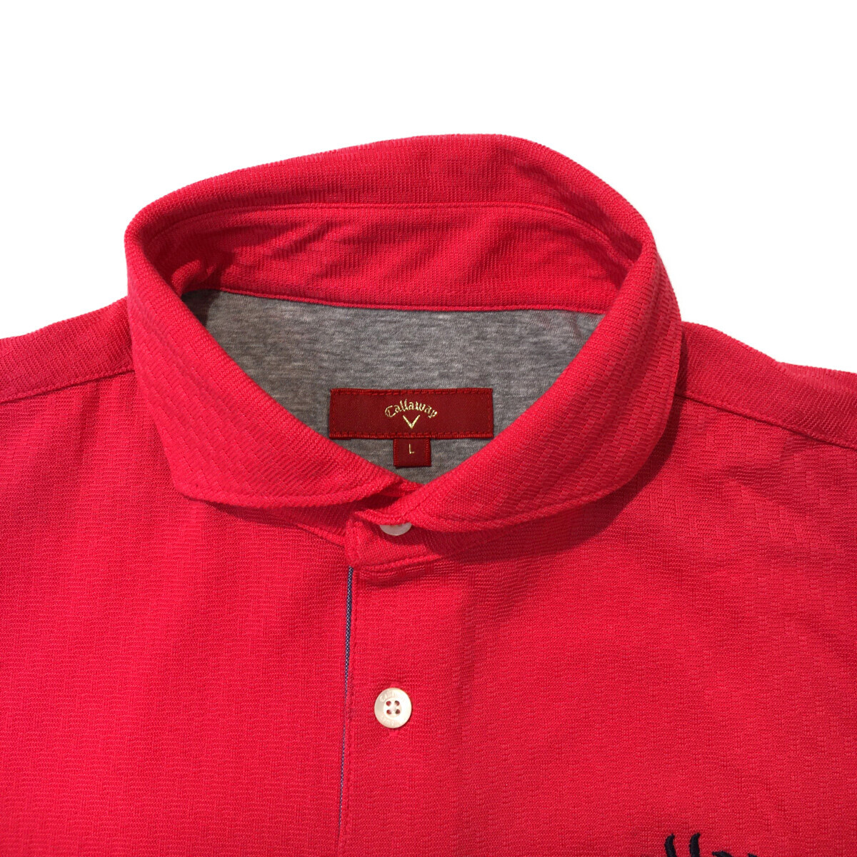 coco 中古【SALE】キャロウェイ Callaway メンズ 半袖ポロシャツ L 濃ピンク 総柄 レターパックプラス発送可 113001