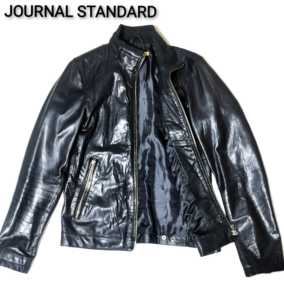 | ジャーナルスタンダード(JOURNAL STANDARD) シープスキン(SHEEP SKIN)ラムレザー(羊革) シワ加工本革レザー シングルライダース ジャケット |