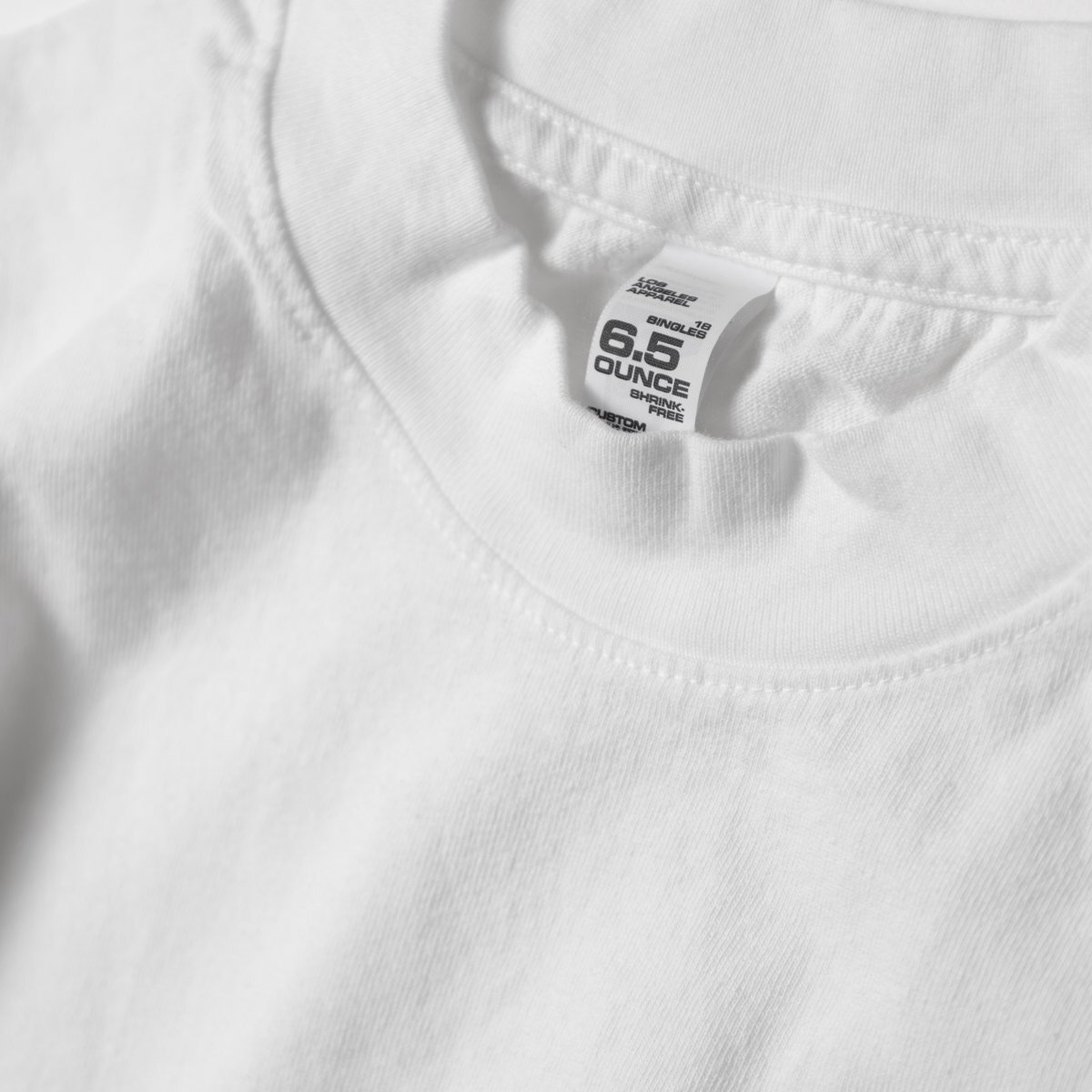 USAコットンの中肉厚の6.5oz生地を使用したガーメントダイクルーネック。