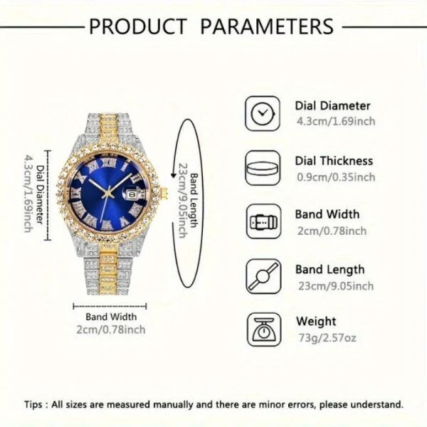 ■仕様(時計) ・ムーブメント:クォーツ式 ・文字盤直径:約4.3cm ・バンド幅:約2.0cm ・バンド長さ:約23cm(調整可) ・重量:約73g