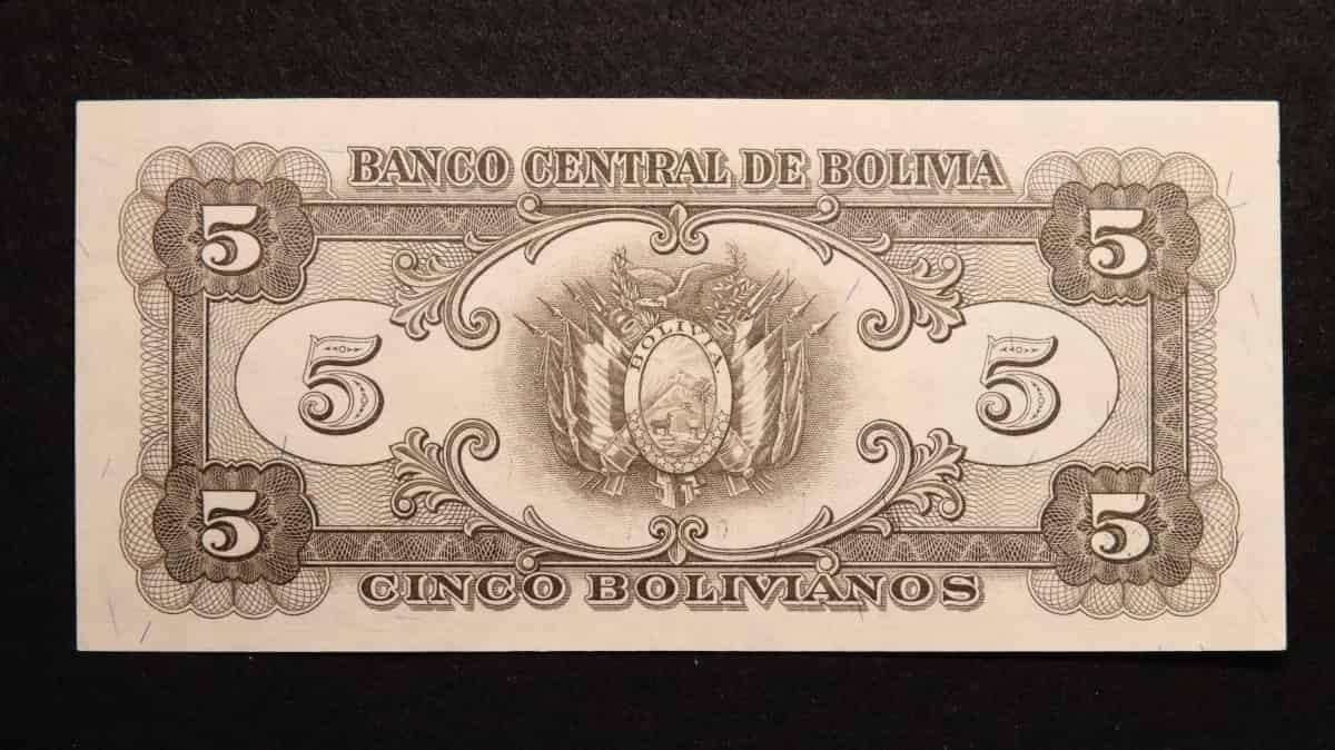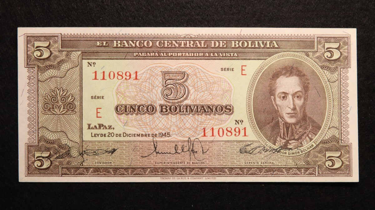 *[令]Pick#138/ボリビア紙幣 5ボリビアーノ(1945)[902]7o1
