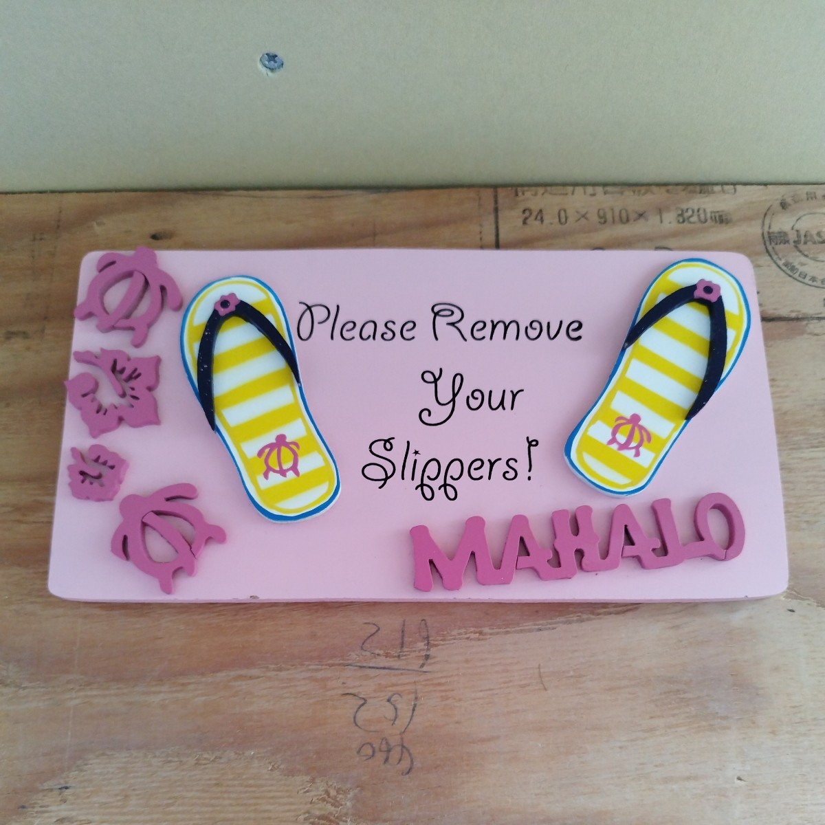 ハワイ雑貨 サインボード マハロ サンダル 大ピンク  壁掛け