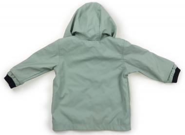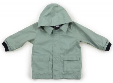 実際のサイズ表記は81cmです。ボーダーの裏地付き。フードは縫い付けです。品質タグにシールはがし跡のノリ残りあり。右袖に複数の汚れがありますが、まだお使いいただけそうです。