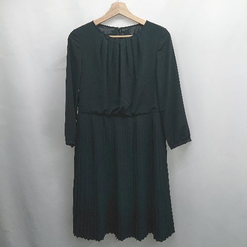 ◇ Θ 7-IDconcept. セブンアイディコンセプト 長袖 膝丈 プリーツ ワンピース サイズ38 ブラック レディース E