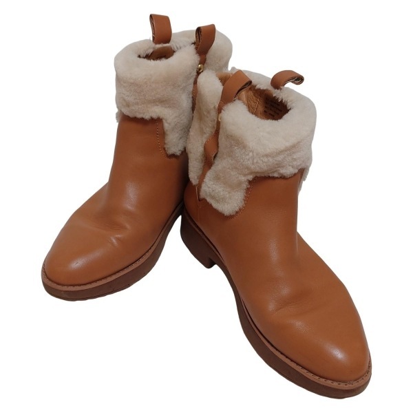 フィットフロップ Fitflop ショートブーツ 23.5 - レザー、ファー ライトブラウン×ベージュ レディース 靴