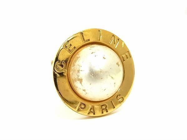 CELINE セリーヌ サークル金具 パール 片耳のみ クリップ式 イヤリング アクセサリー ゴールド系 DF6282