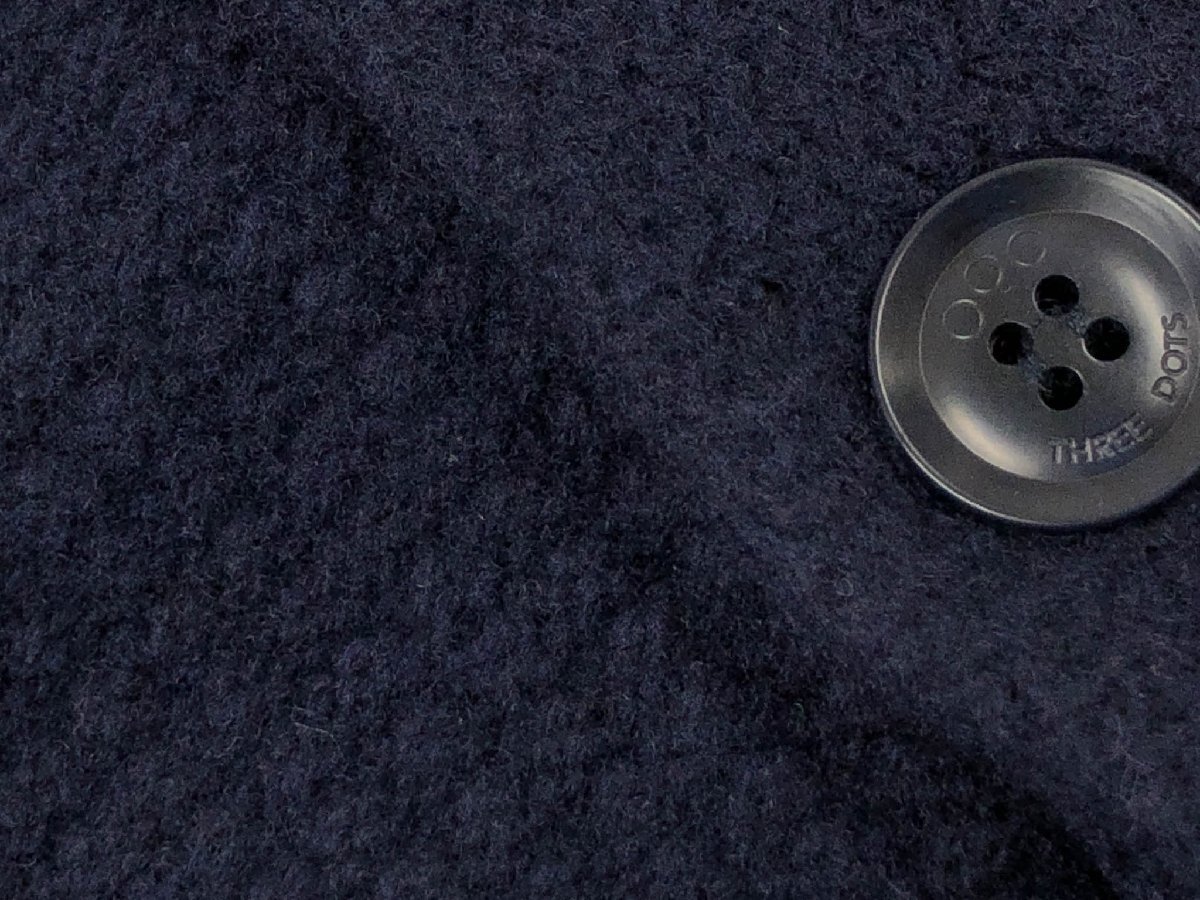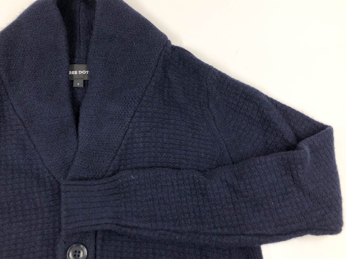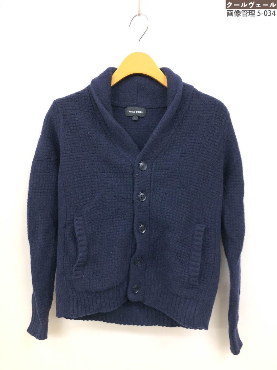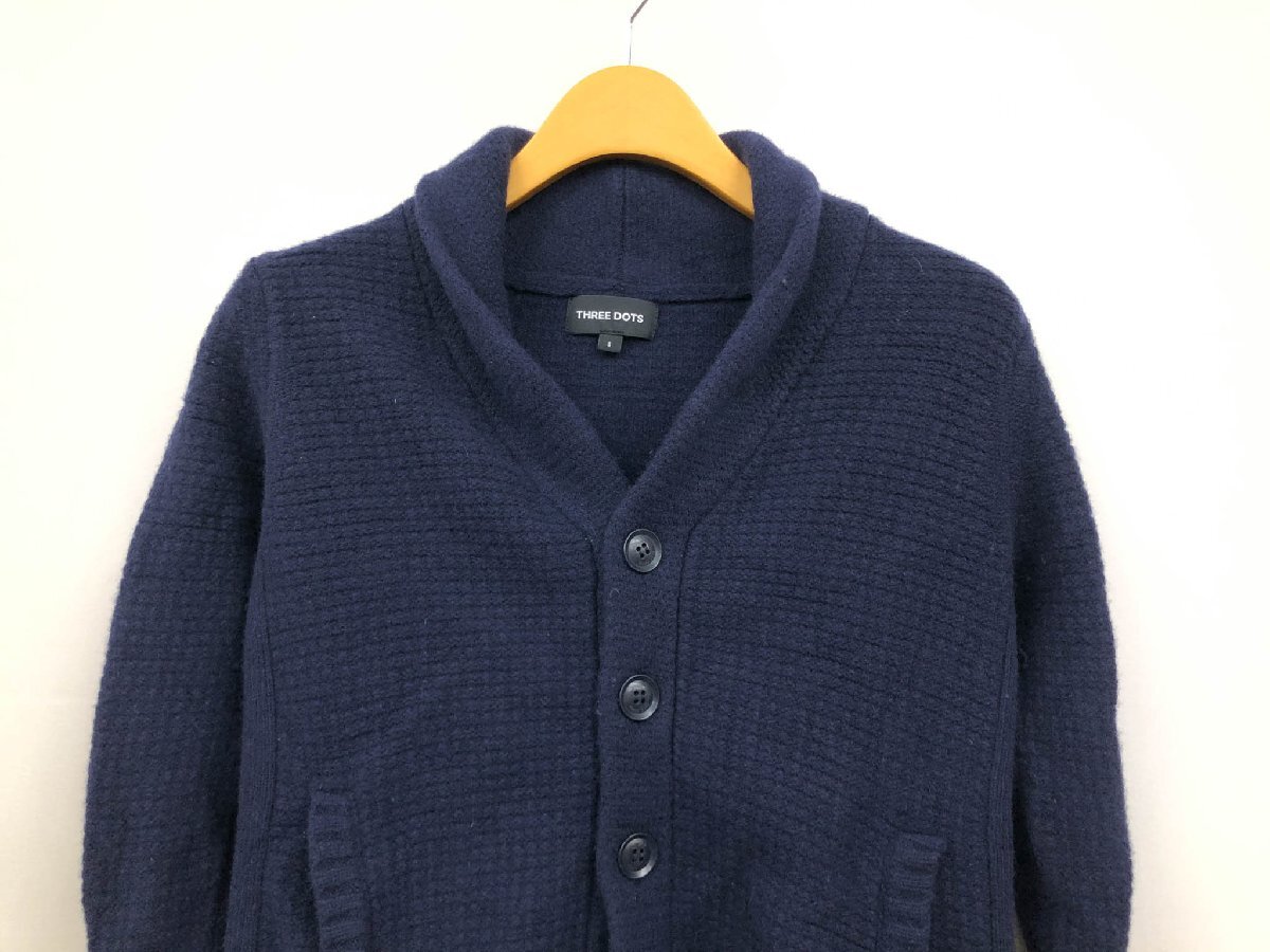 美品【three dots スリードッツ】T169 KP701MY カシミア混 ショールカラー ニットジャケット カーディガン (メンズ) S ネイビー ◇17MN6009