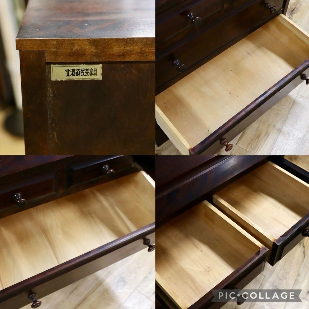 北海道民芸家具は日本民芸運動の「用の美」を求める心と北海道の良質な樺無垢材を厳選し職人の手により丹念に作られる逸品です。北海道民芸家具は1977年に大阪の家具ブランド・クラレインテリアと合併後2009年からはクラレインテリアでの生産・販売が停止され、以降は岐阜県の家具ブランド・飛騨産業が「北海道民芸家具」のブランドおよび製造工場を継承しています。
