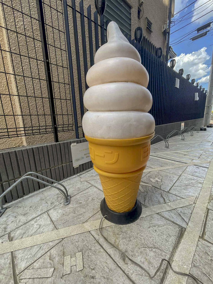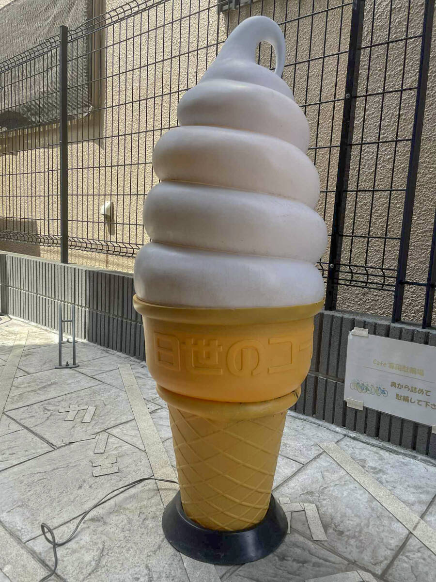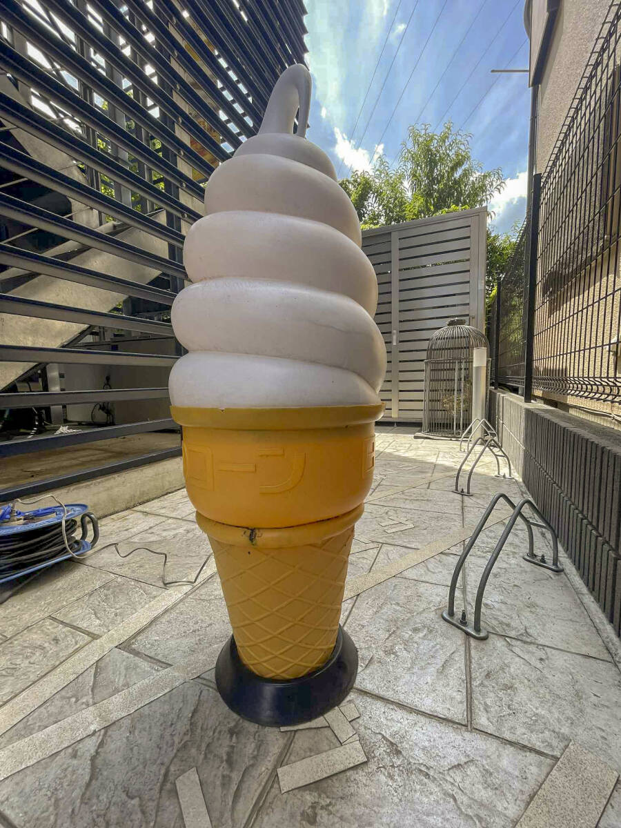 レトロでかわいいソフトクリーム型の看板です。非売品の販促用品で、コンセントを差し込めばしっかり点灯します。店舗のディスプレイやイベントの装飾にいかがでしょうか。