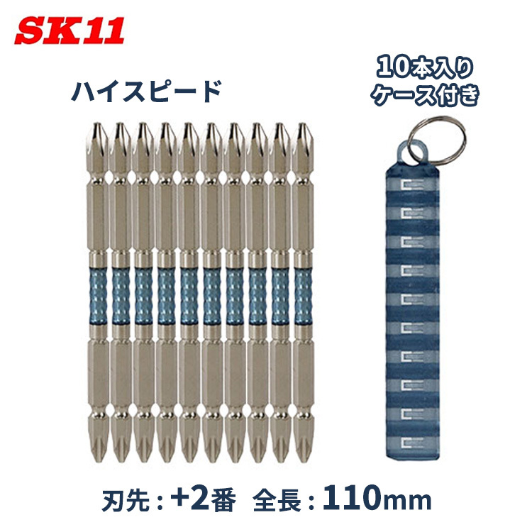 SK11 ドライバービット ドリルビット +2 110mm 10本 ケース付き 高硬度 阿修羅ビット ネジ締め付け インパクトドライバー対応 日本製