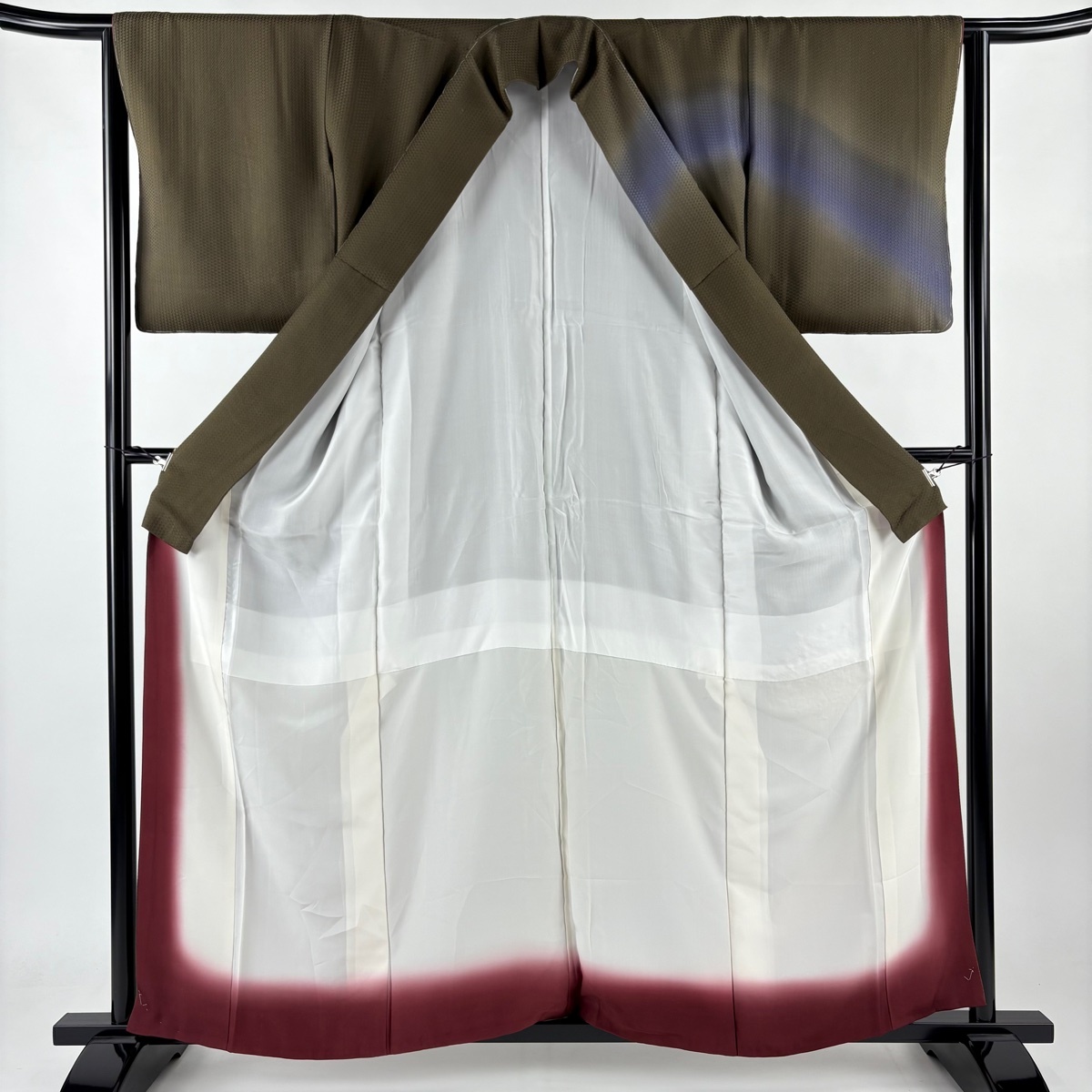 | 付下げ 秀品 草花 刺繍 ぼかし 茶緑色 袷 身丈157.5 裄丈64 M 正絹 【中古】 |