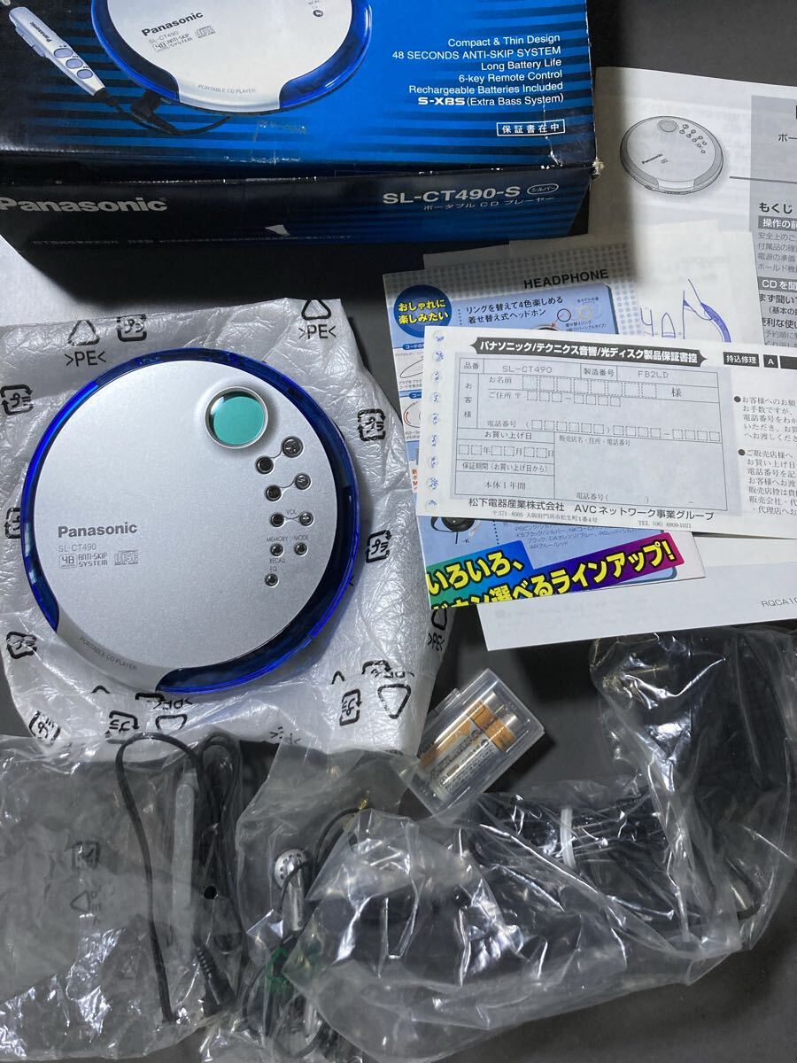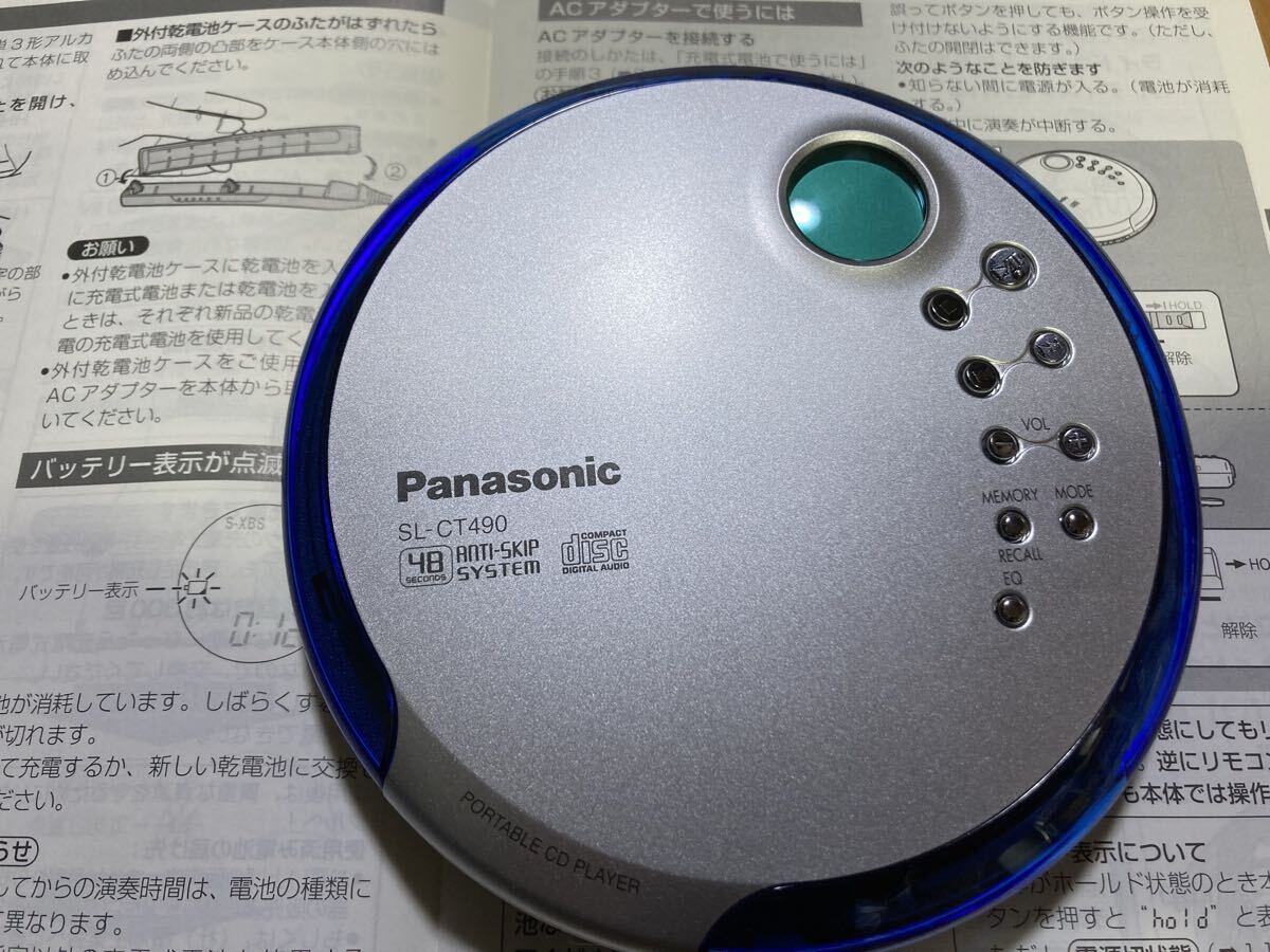 Panasonic/パナソニック ポータブルCDプレーヤー、SL-CT490-S ▼付属品 ACアダプター 単4形充電式電池×2(残量あり オリジナルの電池×2(残量なし インサイドホン リモコン 外付乾電池ケース 元箱※保管によるダメージあり 取扱説明書 以上写真をご確認ください 通電確認、基本動作(再生、停止、選曲、早送りなど)確認済みです。 箱や保護袋に入っていたため、キズや汚れなどは見当たりませんでした。 外箱に保管によるスレ、ダメージなどあります。 ▼仕様 ●色:シルバー×ブルー ●可動状況:通電可、基本動作可 ●サイズ:本体/約 幅132×高さ25×奥行137㎜ ●重さ:本体/約 155g(電池含まず) ★免責事項 ・ネコポス/宅急便コンパクト/ゆうパケット(ポストmini/ポスト/プラス)/定形外/レターパックは 簡易包装になりますので動作保証や発送事故/紛失の保険や補償対象外です。
