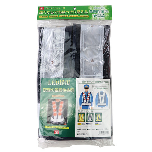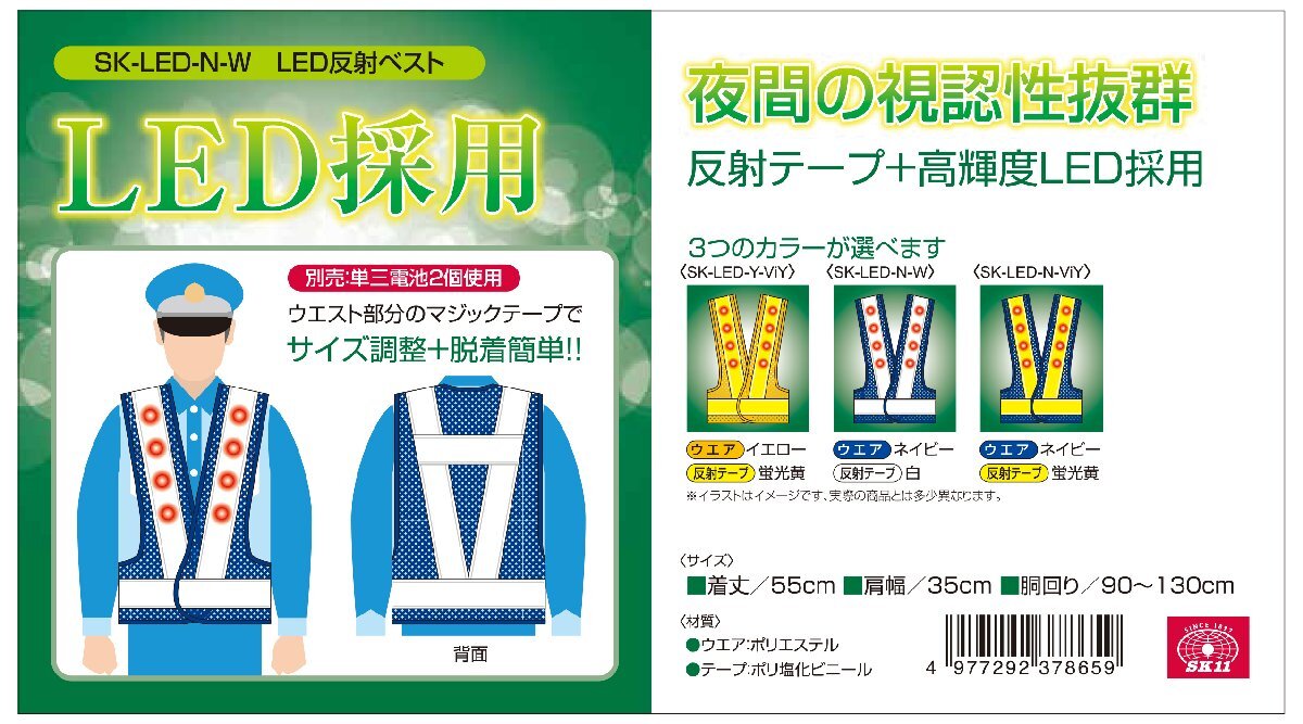 SK11 LED 反射ベスト ネイビー 反射テープ 白 SK-LED-N-W パトロール 工事現場 建設 現場 交通警備 安全ベスト