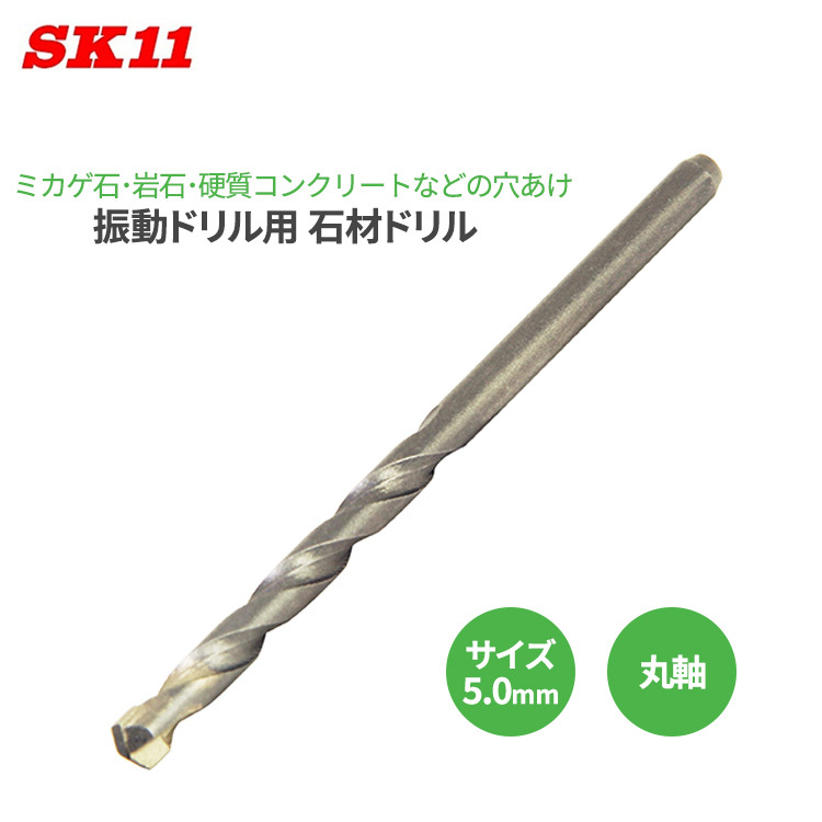 SK11 石材ドリル 5.0mm 丸軸 振動ドリル用 穴あけ 硬質コンクリート 石材 ミカゲ石 硬質瓦 PC板 ドリル