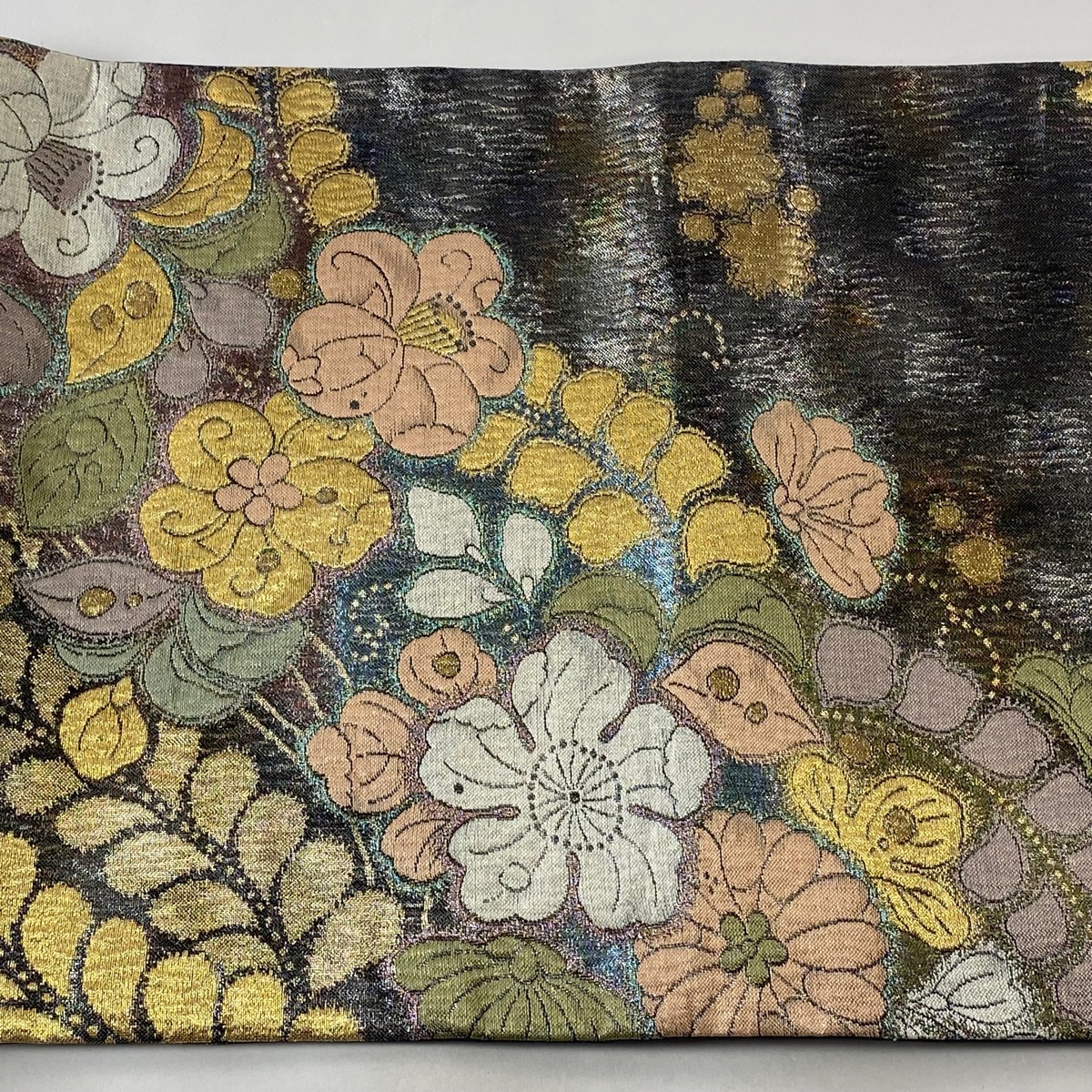 | 袋帯 美品 秀品 草花 金糸 箔 銀色 六通 正絹 【中古】 |