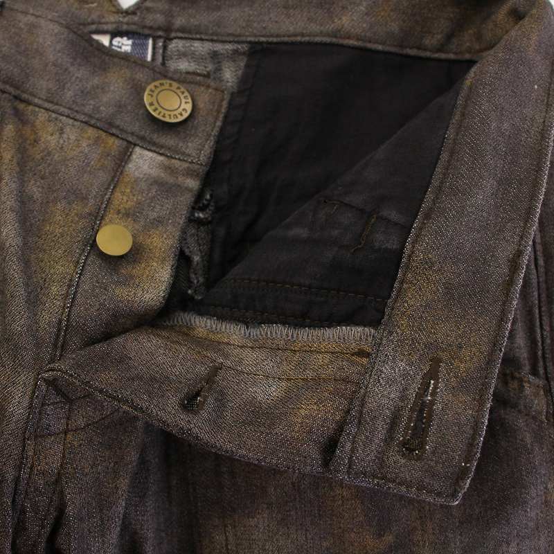 ジャンポールゴルチエ Jean Paul GAULTIER 90’s デニムパンツ ジーンズ ボタンフライ 総柄 46 茶 ブラウン /BB メンズ